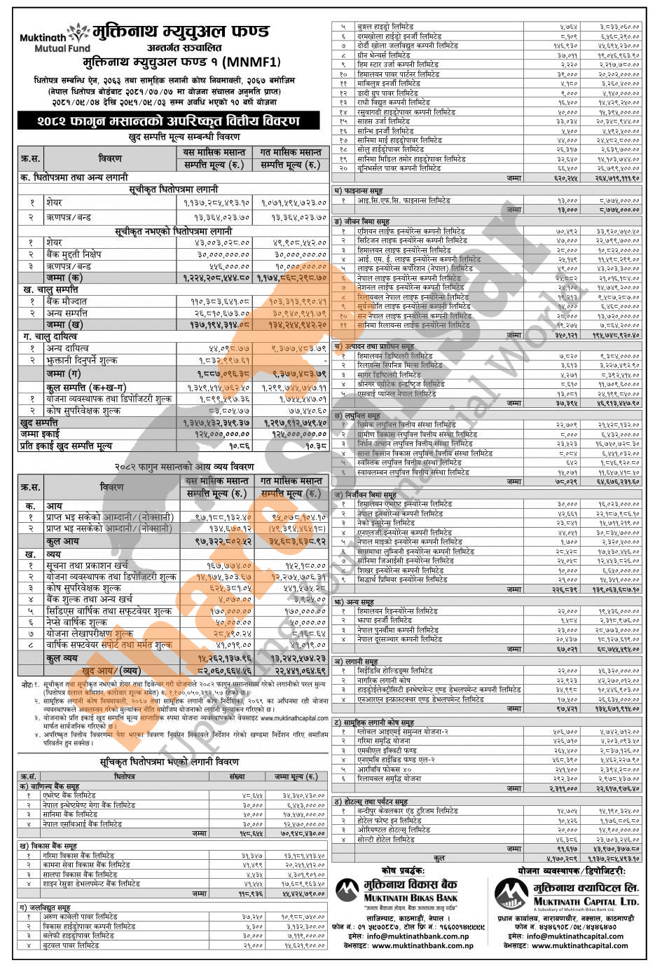 Muktinath Capital Limited has published "Muktinath Mutual Fund 1" Net Assets Value (NAV) till Falgun, 2082.