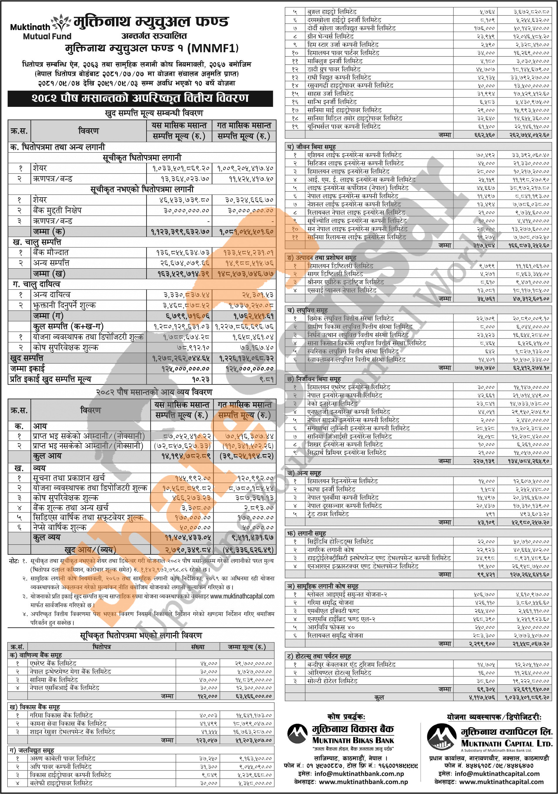 Muktinath Capital Limited has published "Muktinath Mutual Fund 1" Net Assets Value (NAV) till Poush, 2082.
