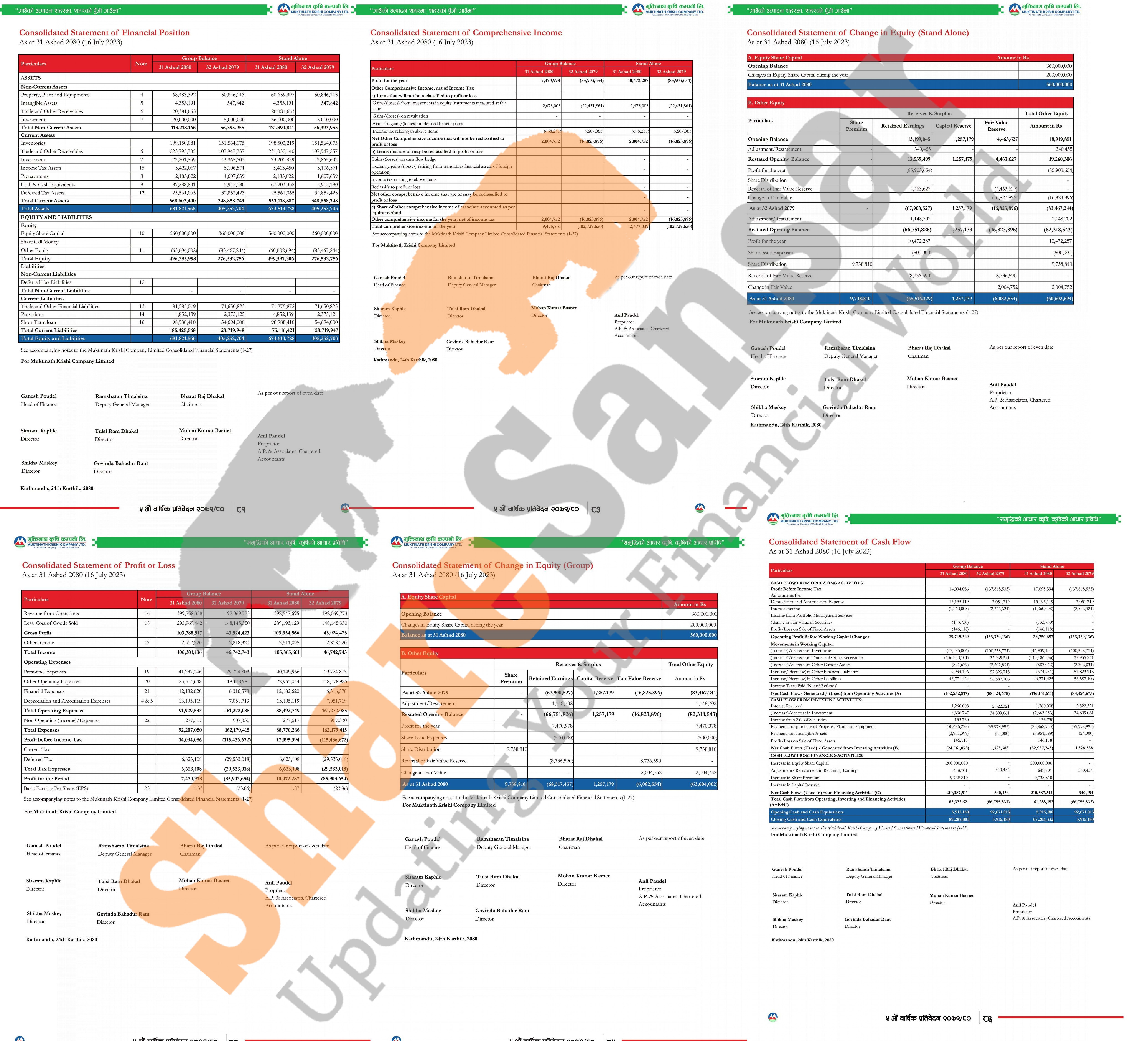 Muktinath Krishi Company Limited has published its annual financial statement of the fiscal year 2079/80.