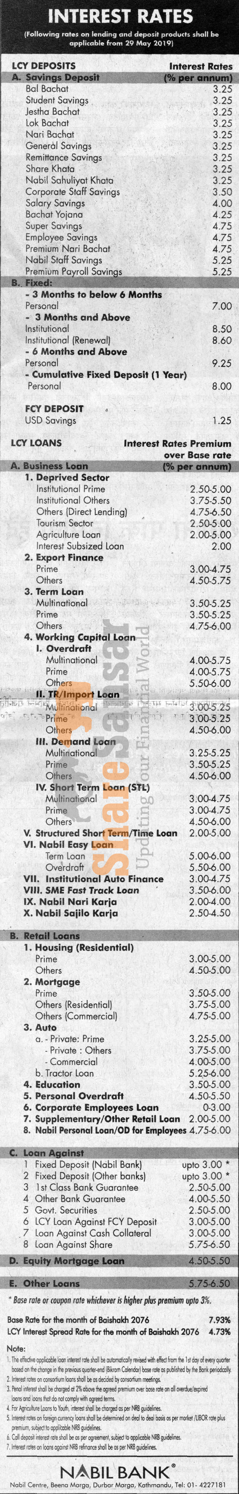 Nabil Bank Limited has published a notice regarding new interest rate and its effective from 15th Jestha, 2076.