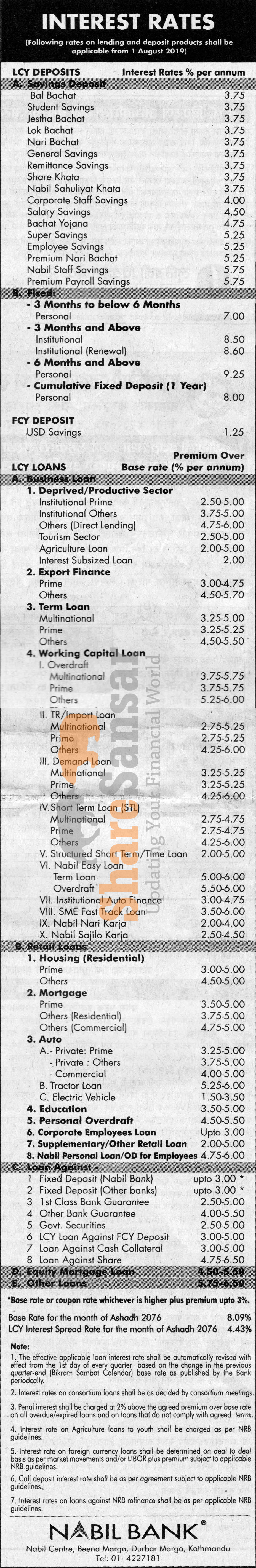 Nabil Bank Limited has published a notice regarding new interest rate and its effective from 15th Shrawan, 2076.
