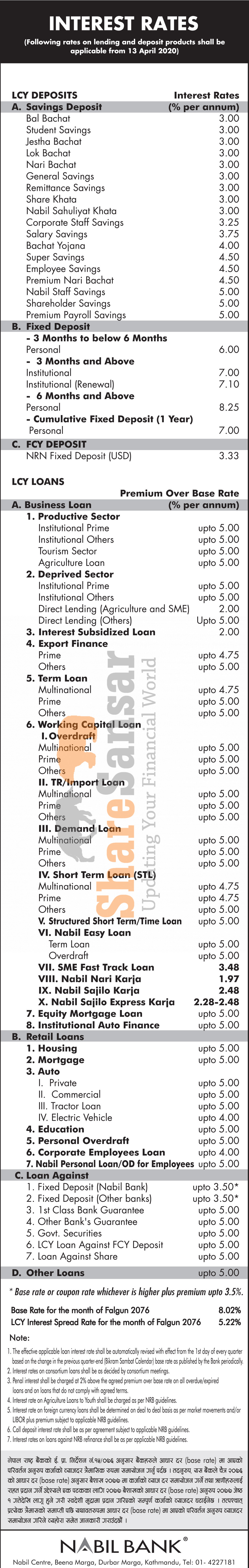Nabil Bank Limited has published a notice regarding new interest rate and its effective from 1st Baishakh, 2077.