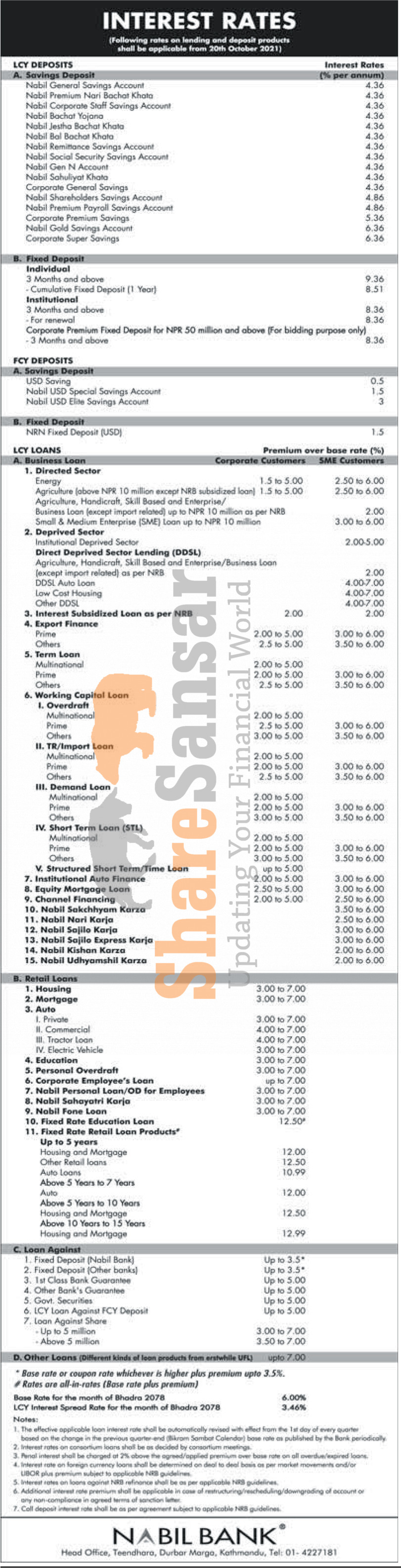 Nabil Bank Limited has published a notice regarding new revised interest rate and it's effective from 3rd Kartik, 2078.