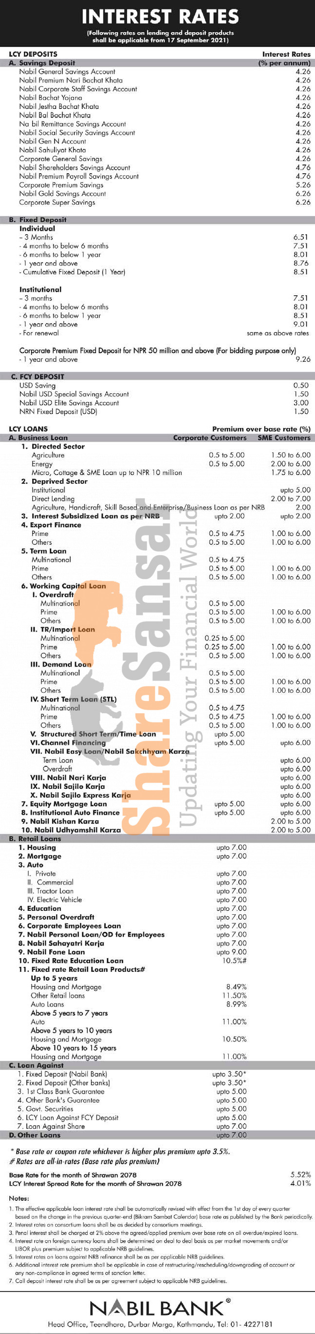 Nabil Bank Limited has published a notice regarding the new interest rate for deposit and loan products and it's effective from 1st Ashwin, 2078.