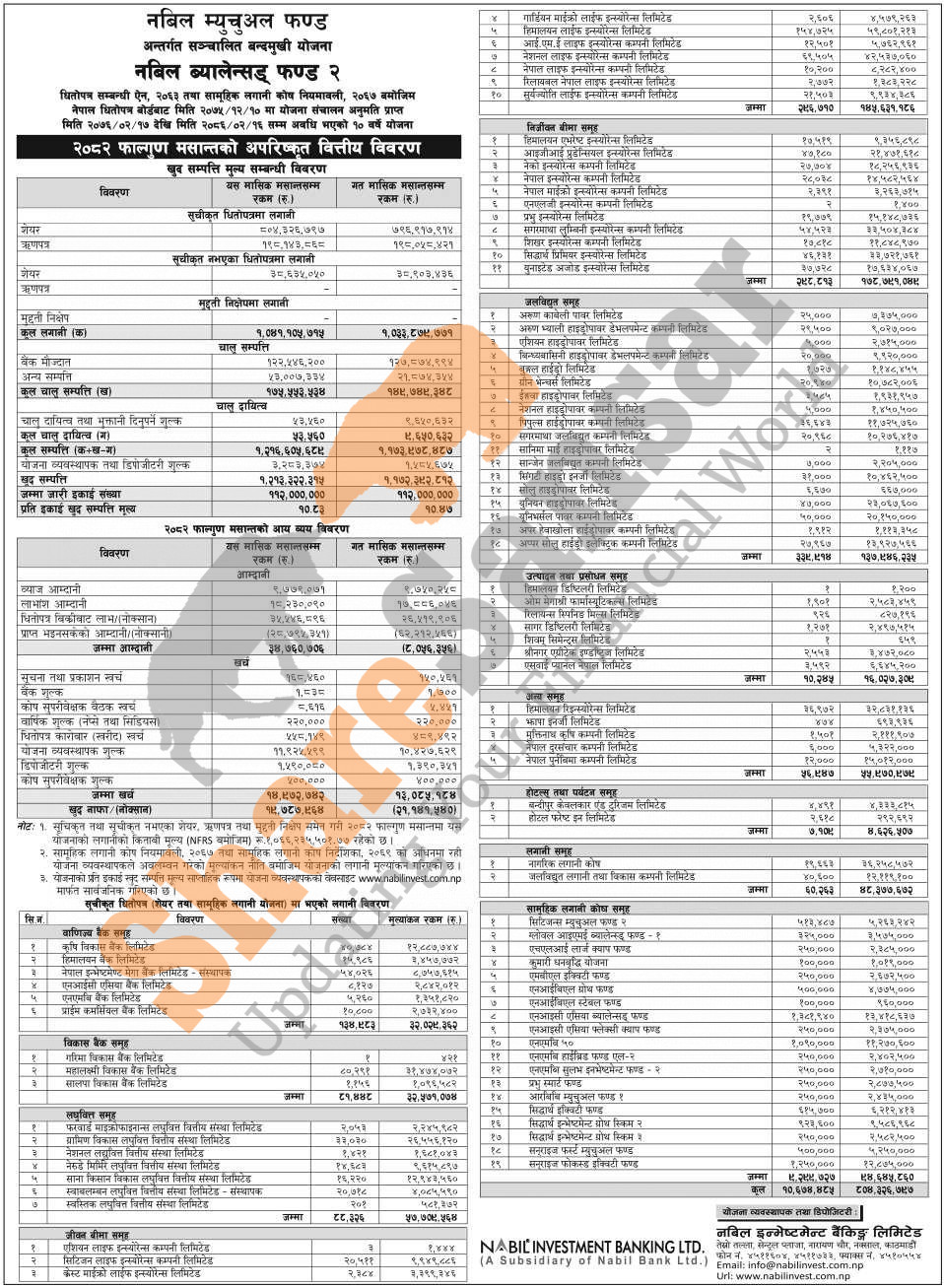 Nabil Investment Banking Limited has published "Nabil Balanced Fund 2" Net Assets Value (NAV) till Falgun, 2082.