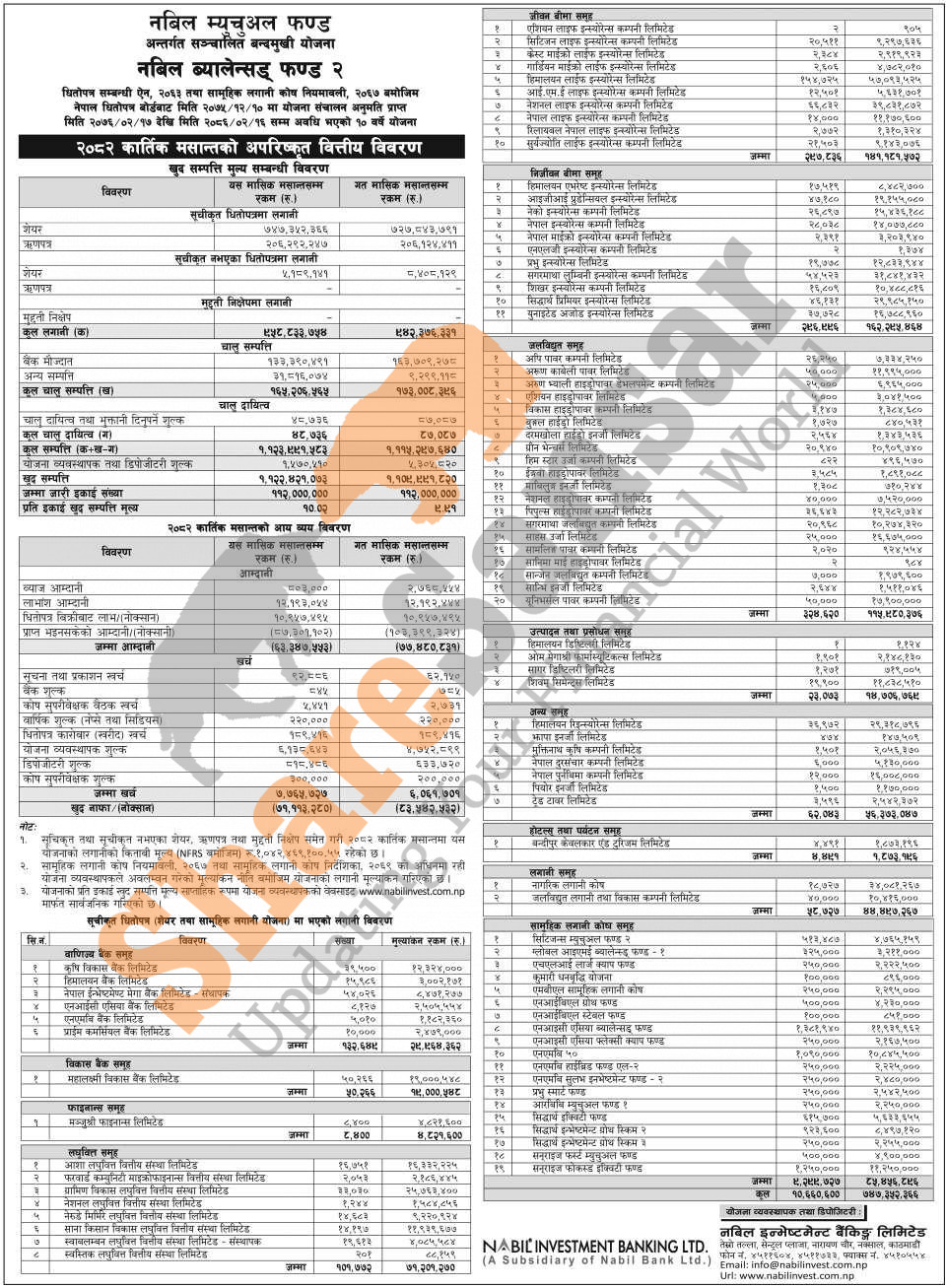 Nabil Investment Banking Limited has published "Nabil Balanced Fund 2" Net Assets Value (NAV) till Kartik, 2082.