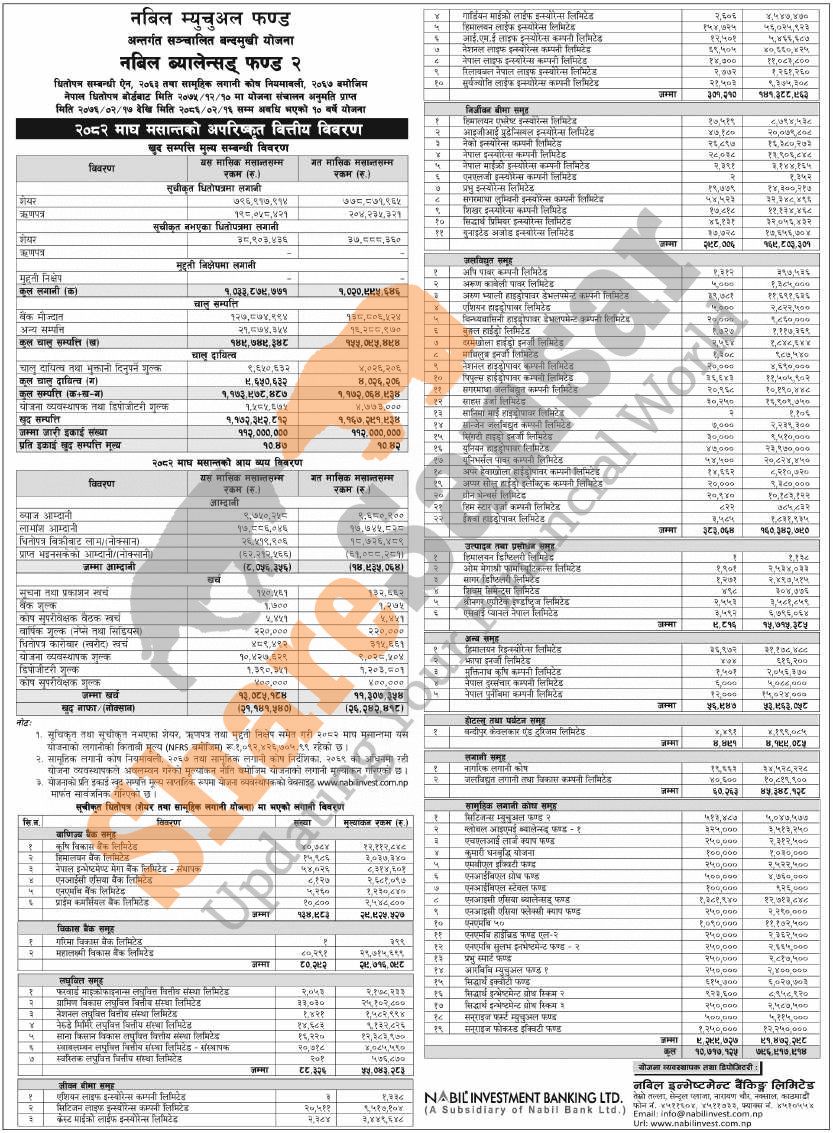 Nabil Investment Banking Limited has published "Nabil Balanced Fund 2" Net Assets Value (NAV) till Magh, 2082.