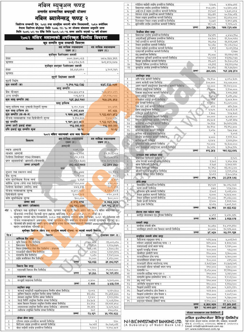 Nabil Investment Banking Limited has published "Nabil Balanced Fund 2" Net Assets Value (NAV) till Mangsir, 2082.