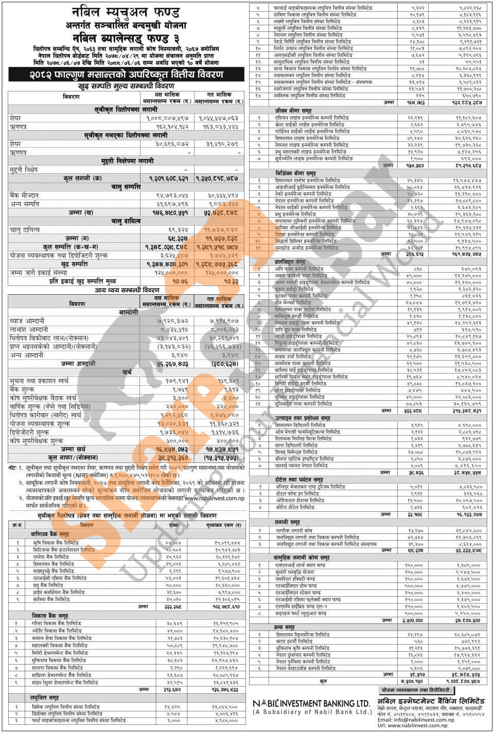 Nabil Investment Banking Limited has published "Nabil Balanced Fund III" Net Assets Value (NAV) till Falgun, 2082.