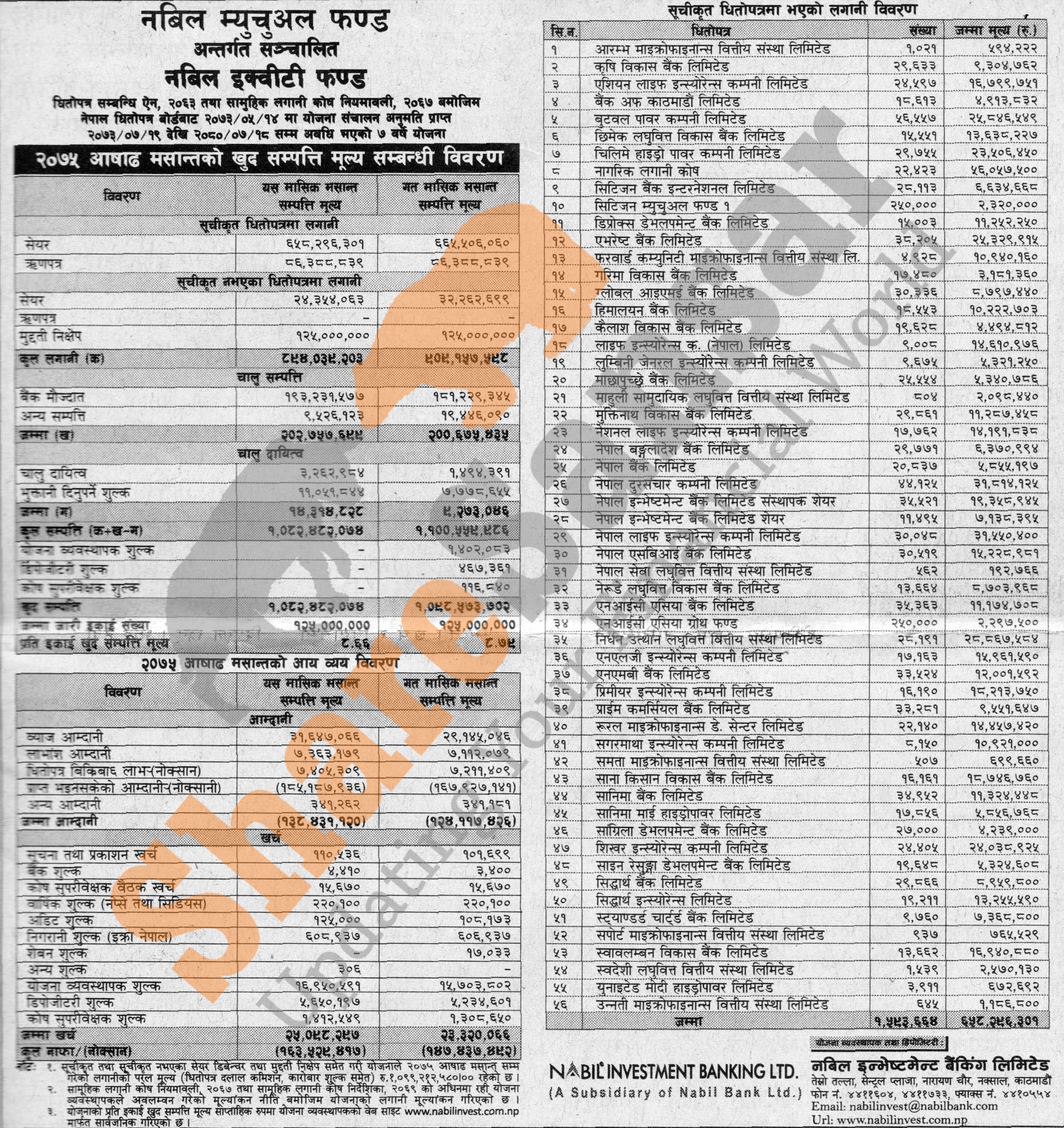 Nabil Investment Banking Limited has published (Nabil Equity Fund) Net Assets Value (NAV) till Ashad, 2075.