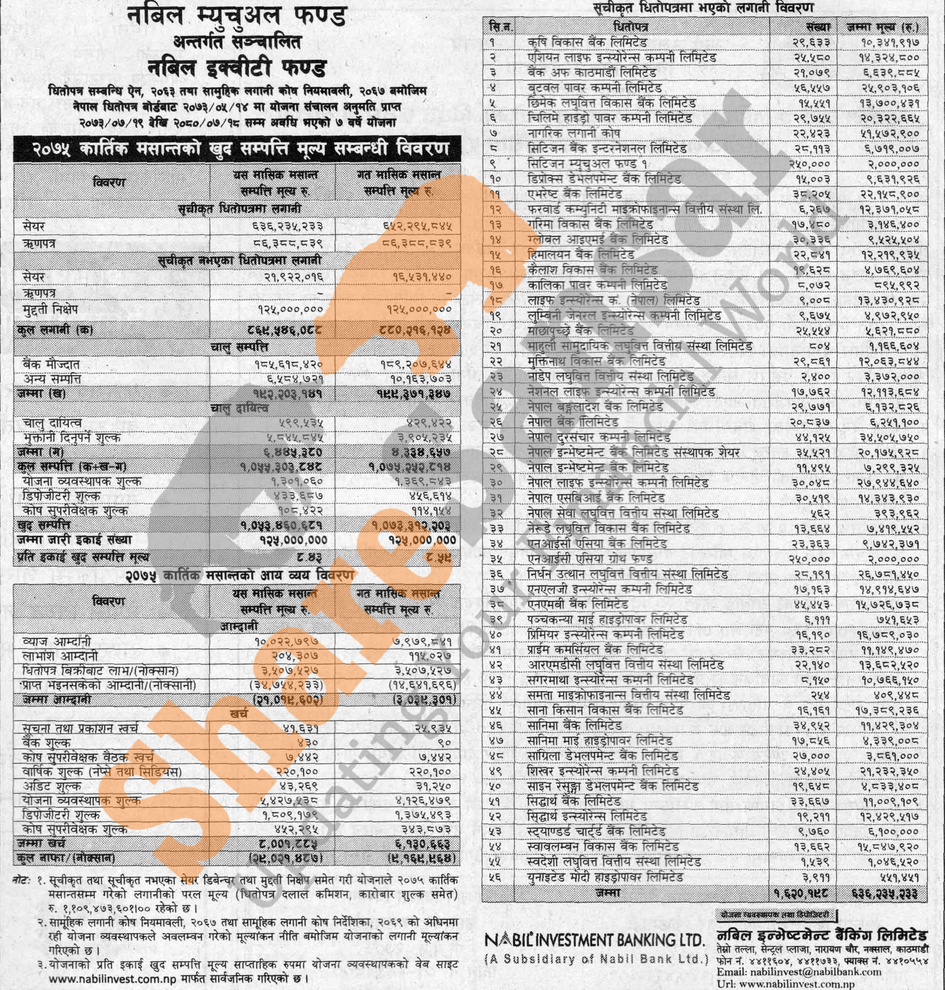 Nabil Investment Banking Limited has published "Nabil Equity Fund" Net Assets Value (NAV) till Kartik, 2075.