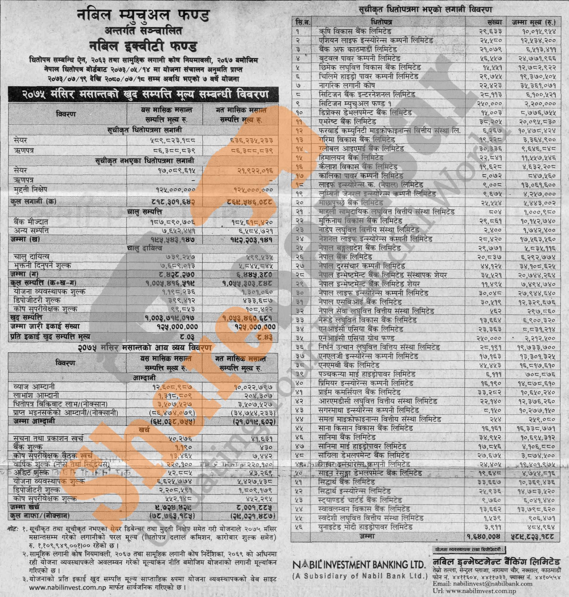 Nabil Investment Banking Limited has published "Nabil Equity Fund" Net Assets Value (NAV) till Mangsir, 2075.