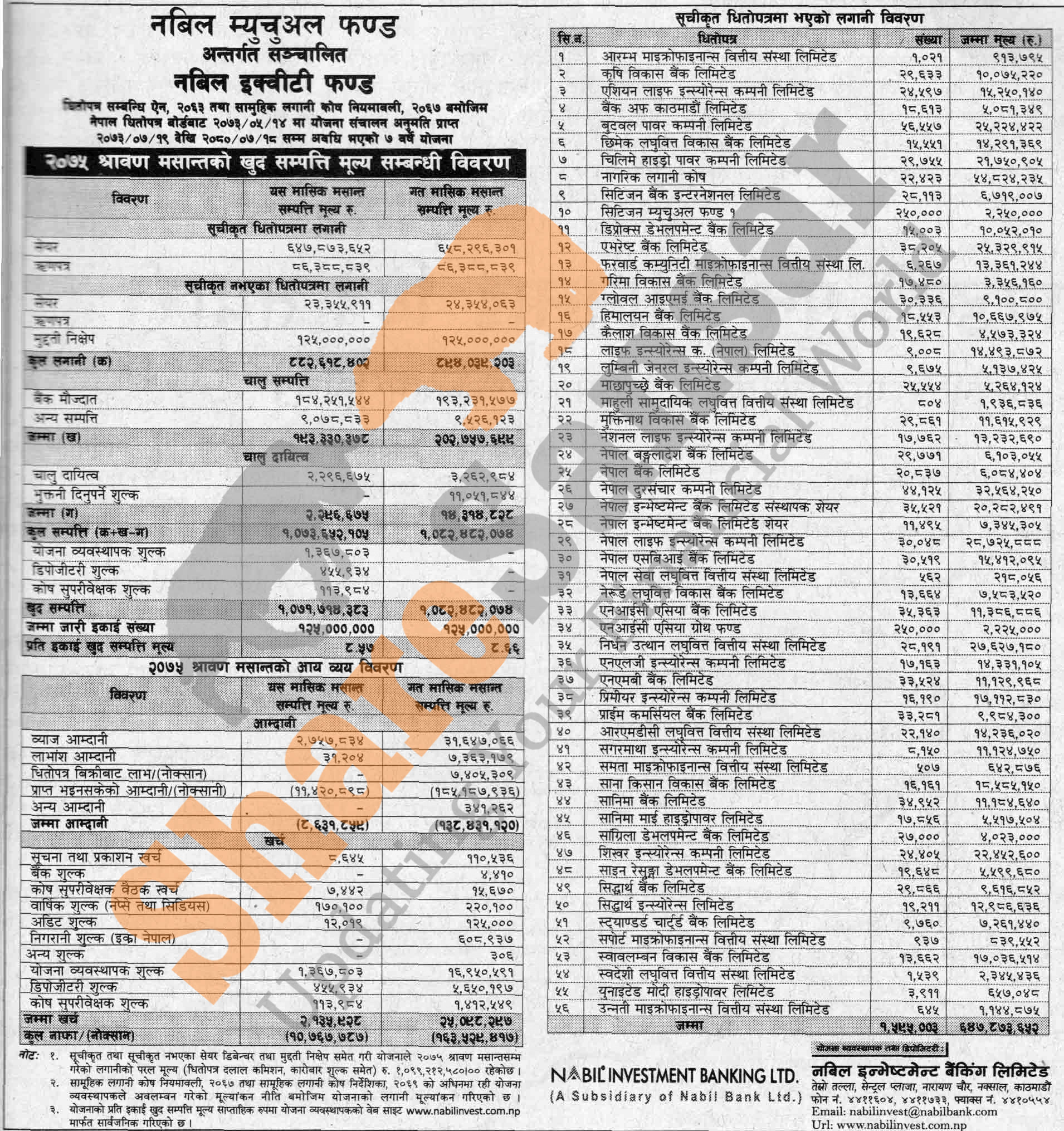 Nabil Investment Banking Limited has published (Nabil Equity Fund) Net Assets Value (NAV) till Shrawan, 2075.