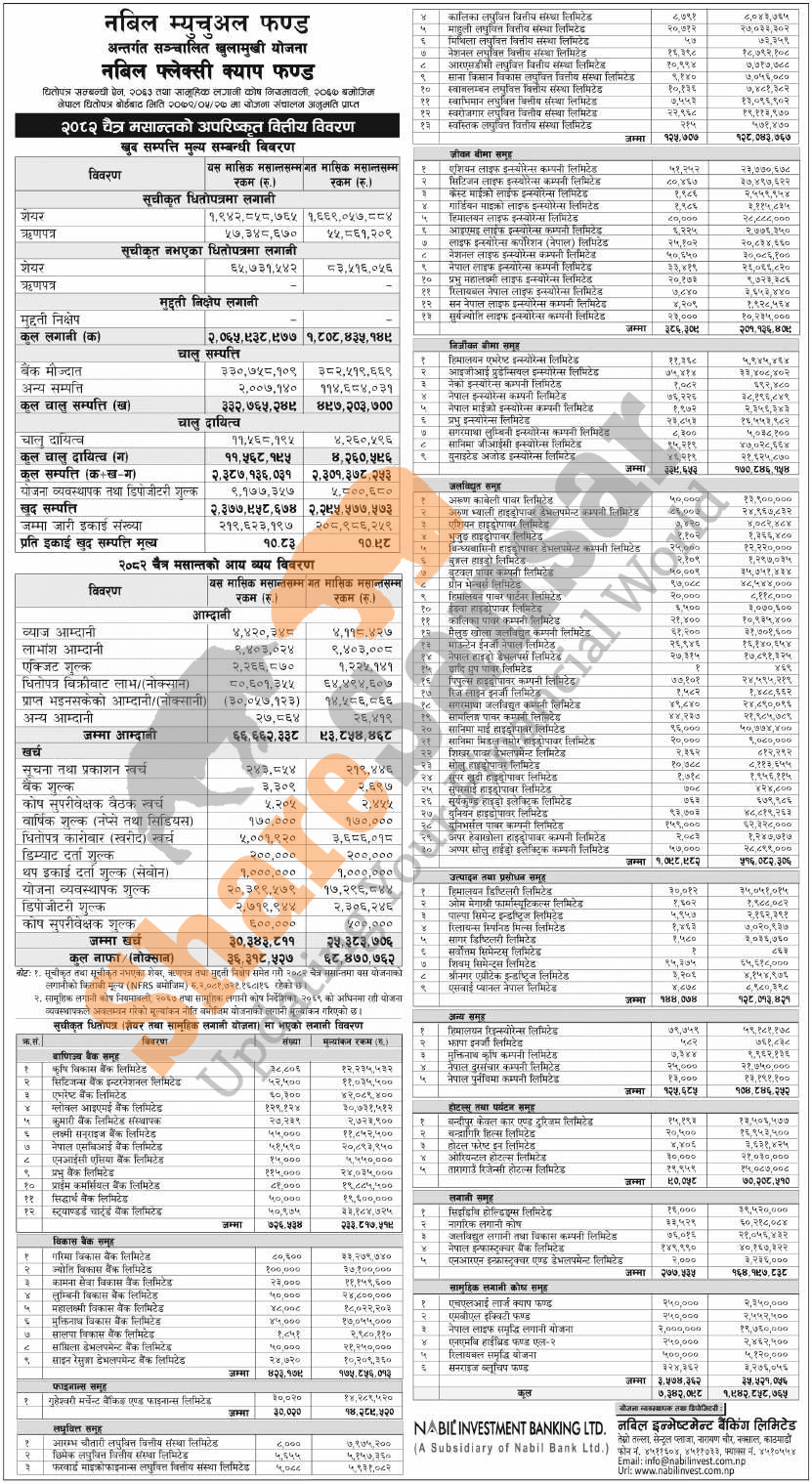 Nabil Investment Banking Limited has published "Nabil Flexi Cap Fund" Net Assets Value (NAV) till Chaitra, 2082.