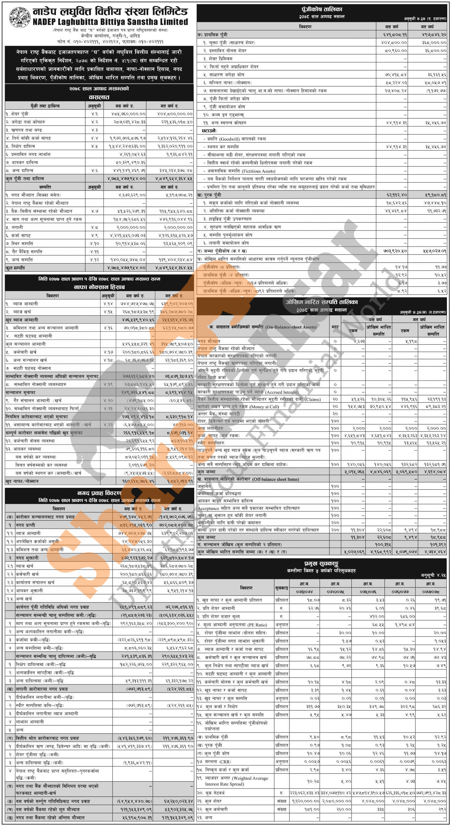 NADEP Laghubitta Bittiya Sanstha Limited has published its annual financial statement of the fiscal year 2077/78.