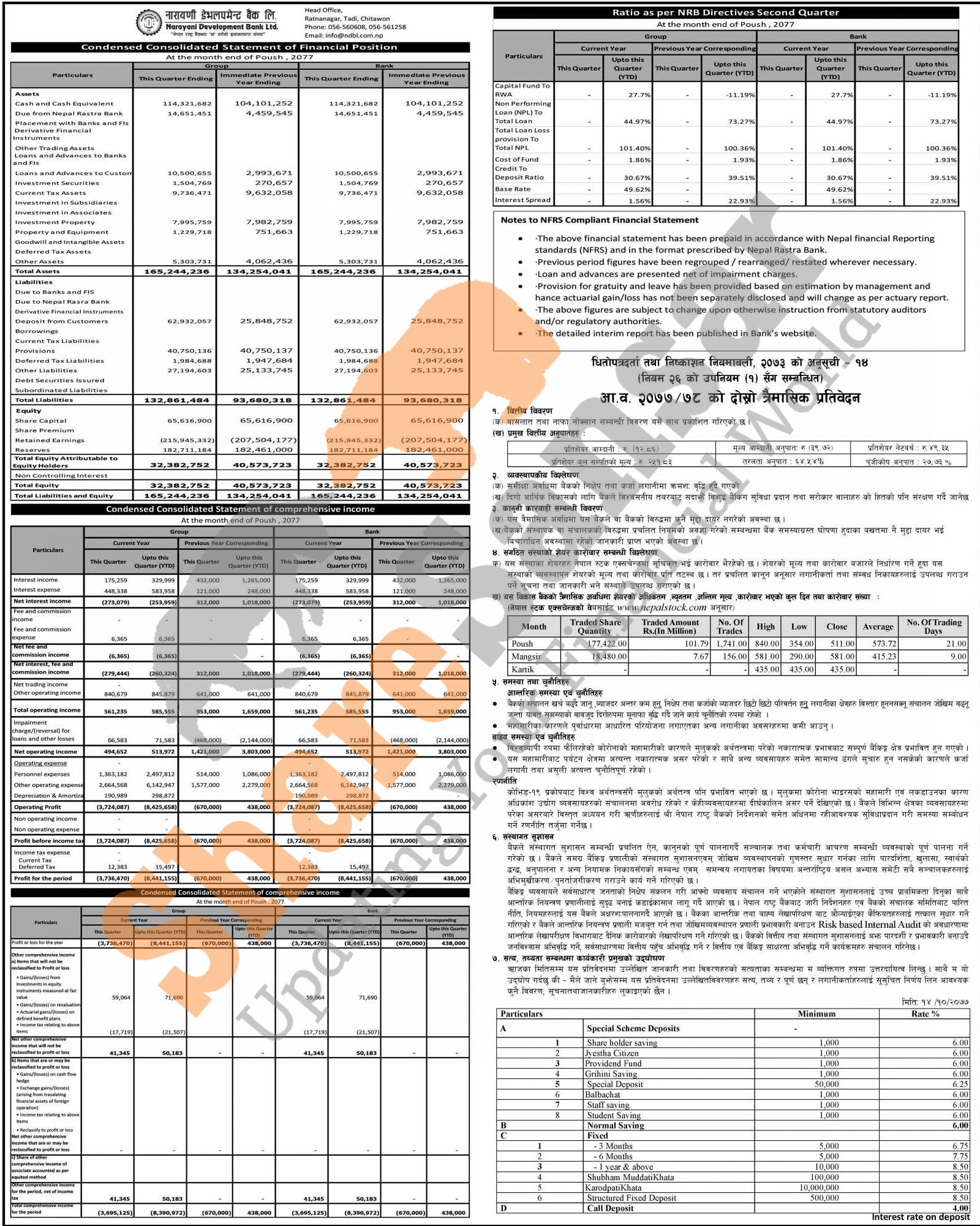 Narayani Development Bank Limited has posted a net loss of Rs 1.44 million and published its 2nd quarter company analysis of the fiscal year 2077/78.
