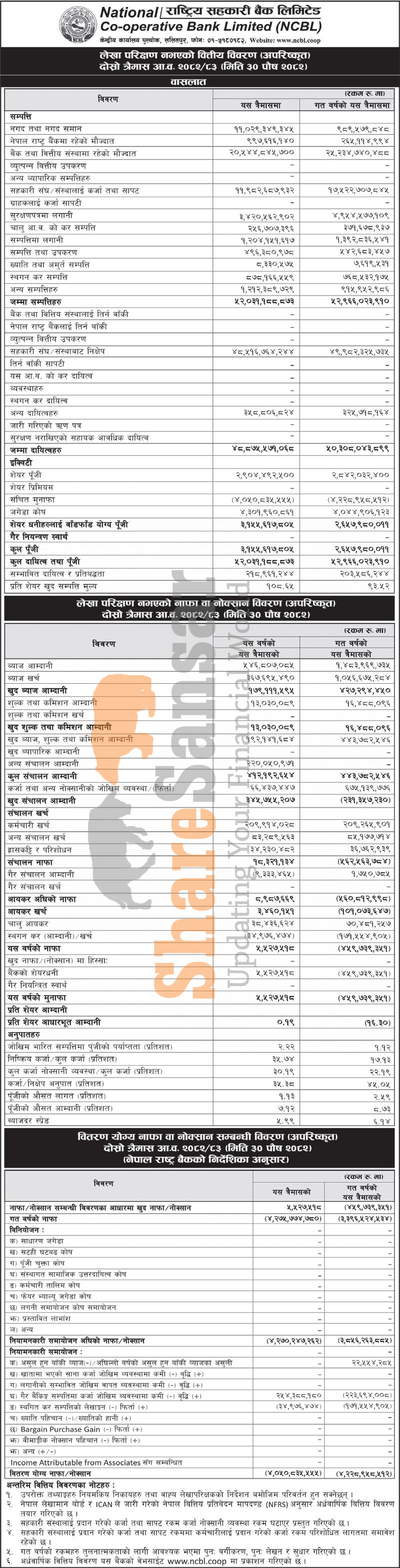 National Co-operative Bank Limited has posted a net profit of Rs 5.52 million and published its 2nd quarter company analysis of the fiscal year 2082/83.
