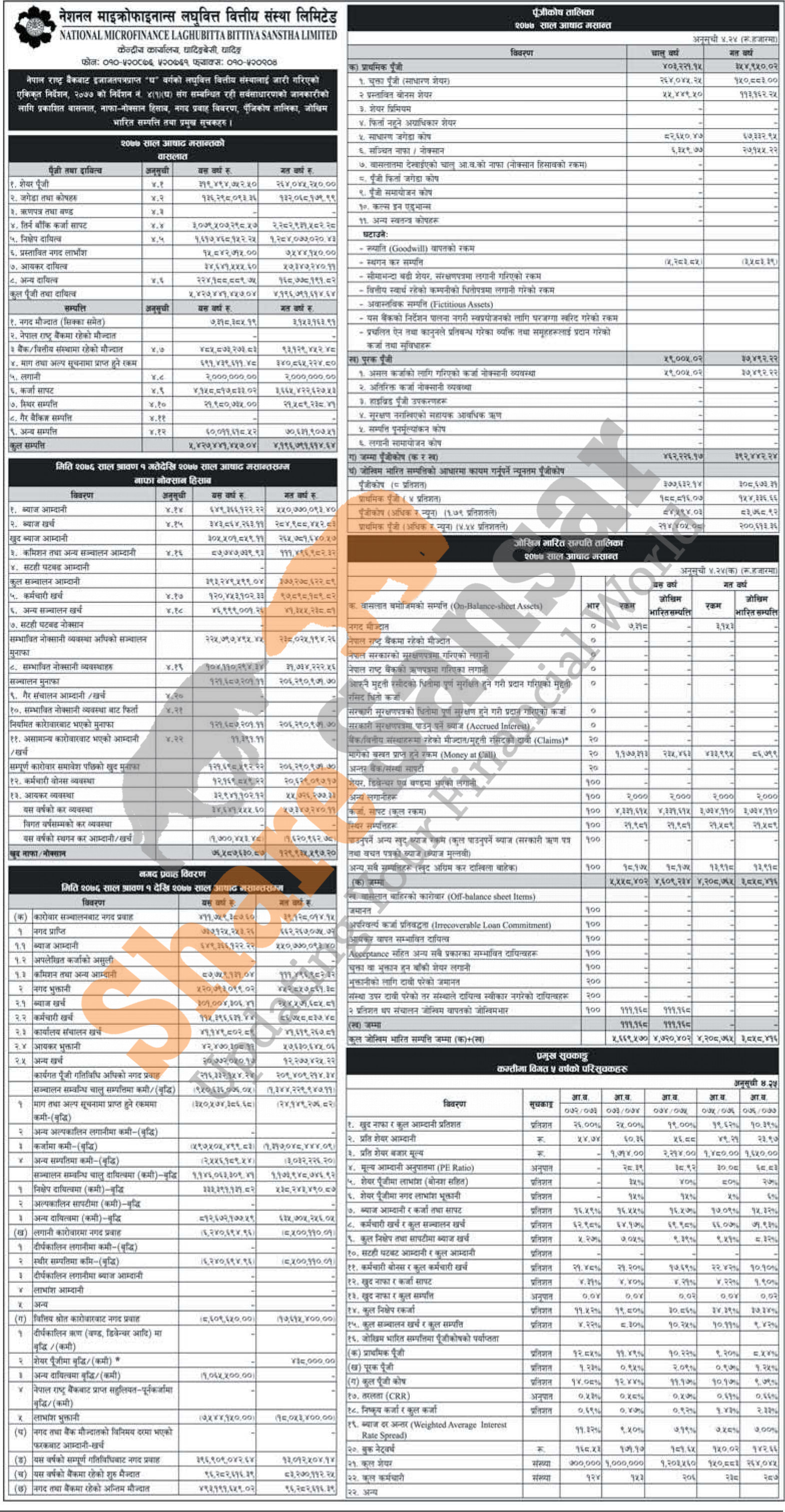 National Microfinance Laghubitta Bittiya Sanstha Limited has published its annual financial highlights of the fiscal year 2076/77.