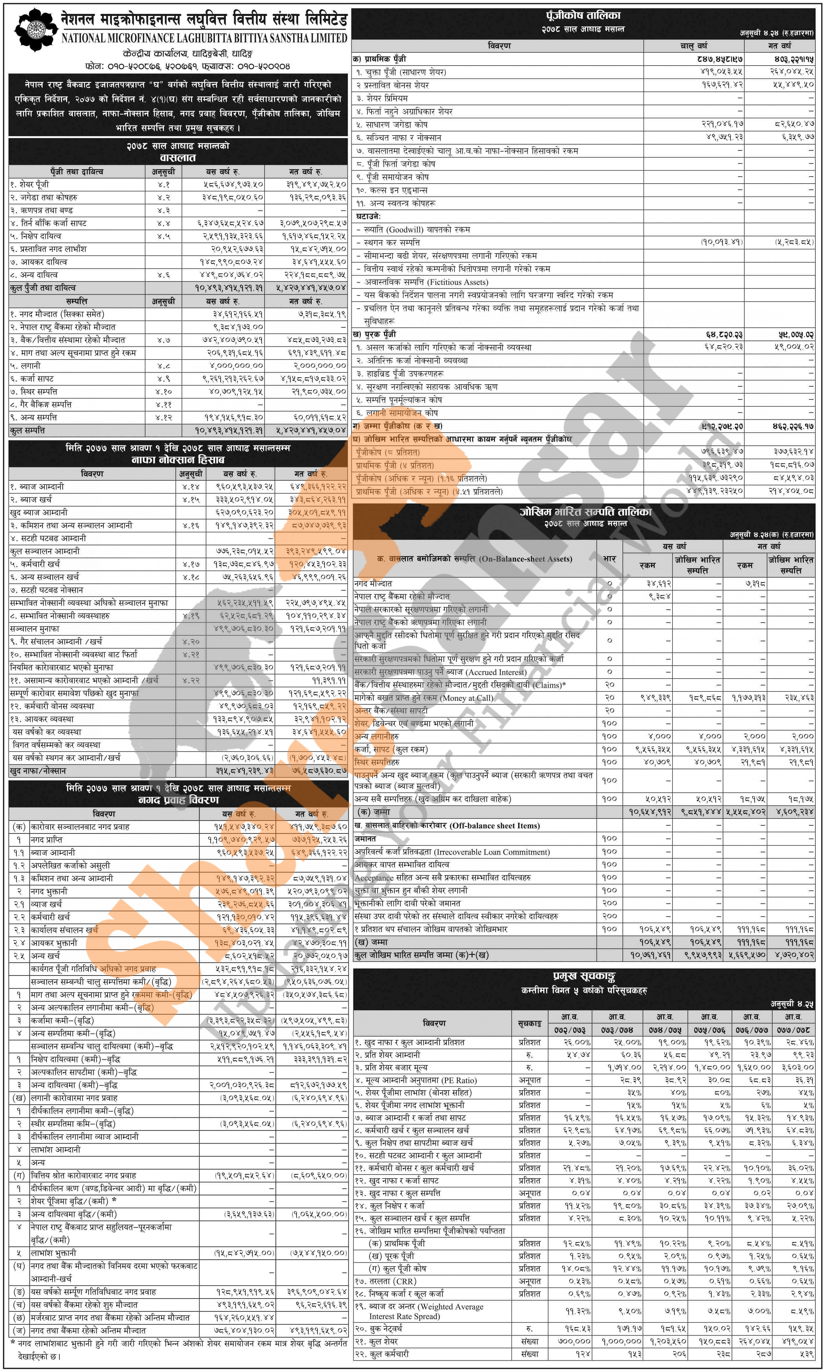 National Microfinance Laghubitta Bittiya Sanstha Limited has published its annual financial statement of the fiscal year 2077/78.