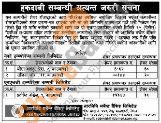 Neco Insurance Limited has published a notice regarding a claim for lost share certificates.