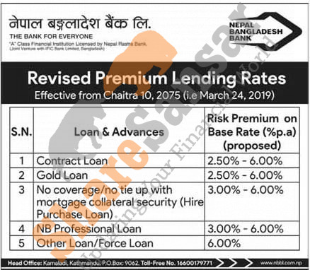 Nepal Bangladesh Bank Limited has published a notice regarding new interest rate and its effective from 10th Chaitra, 2075.