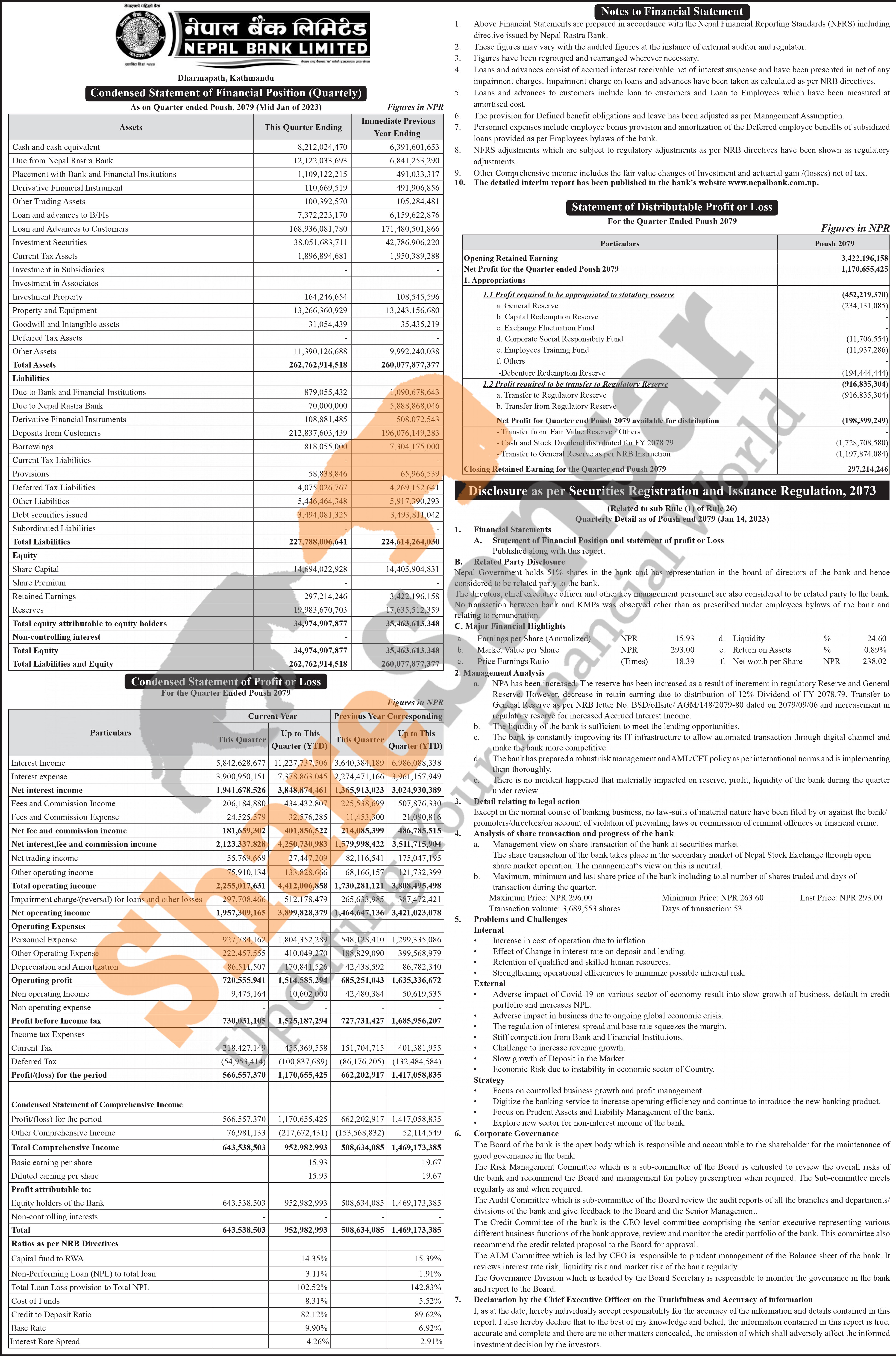 Nepal Bank Limited has posted a net profit of Rs 1.17 billion and published its 2nd quarter company analysis of the fiscal year 2079/80.