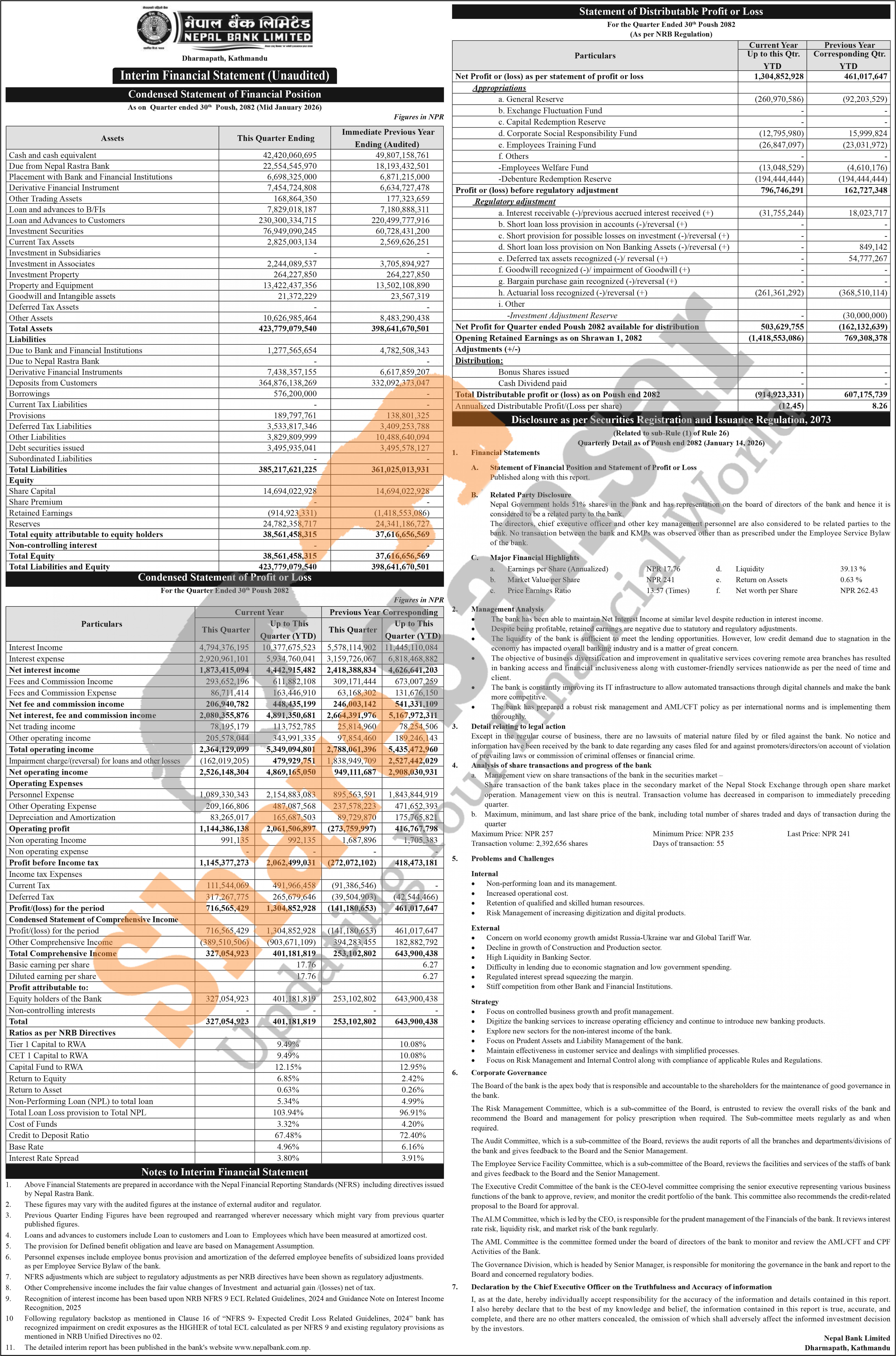 Nepal Bank Limited has posted a net profit of Rs 1.30 billion and published its 2nd quarter company analysis of the fiscal year 2082/83.