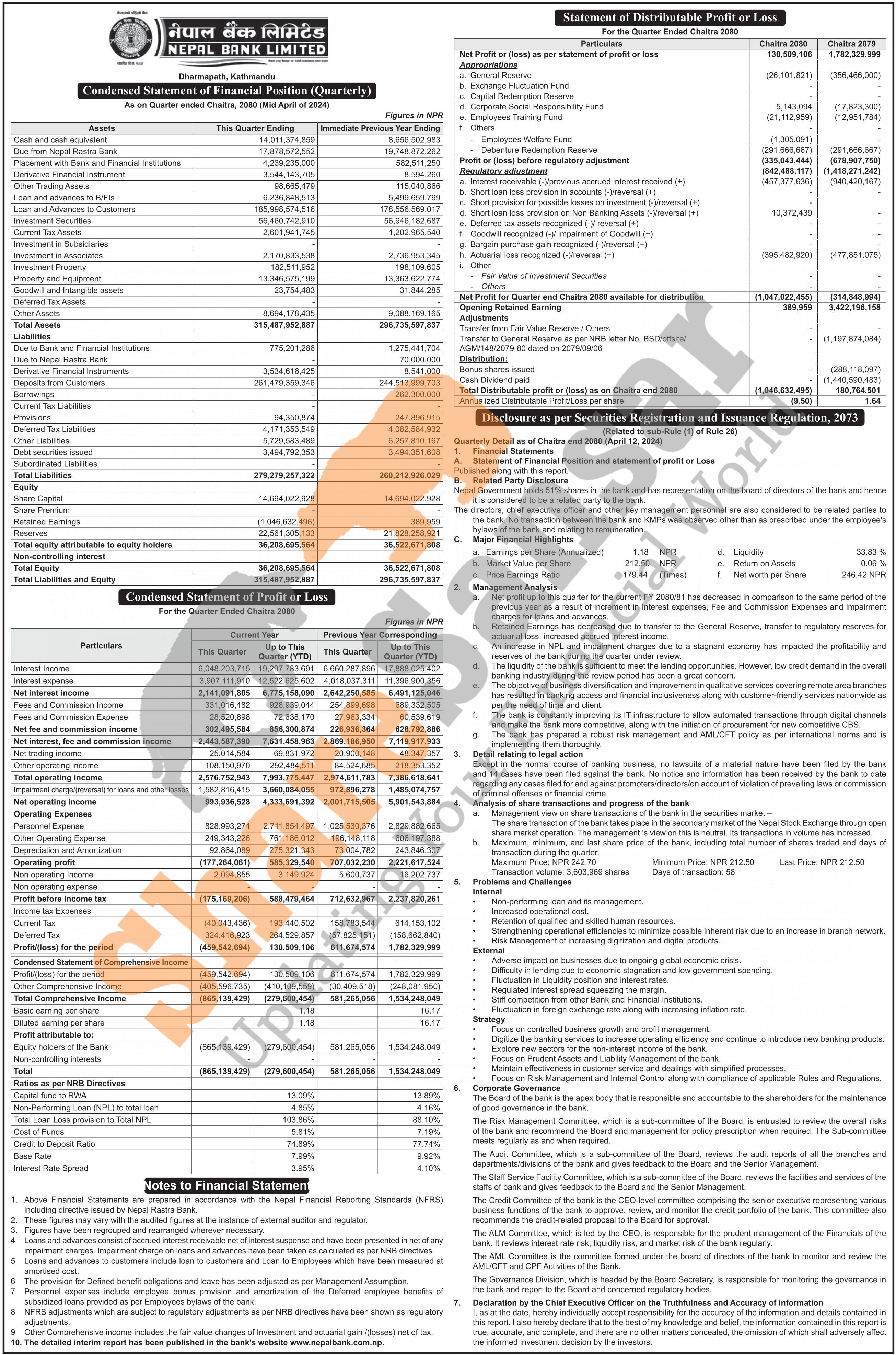Nepal Bank Limited has posted a net profit of Rs 130.50 million and published its 3rd quarter company analysis of the fiscal year 2080/81.