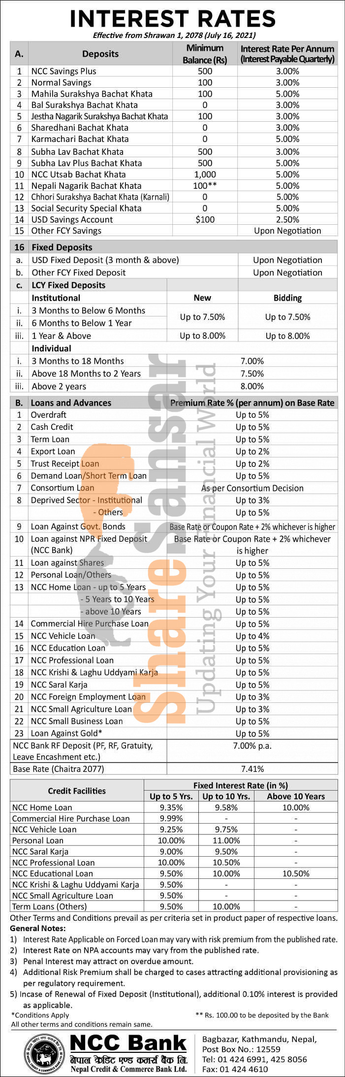 Nepal Credit and Commerce Bank Limited has published a notice regarding the new interest rate for deposit products and it's effective from 1st Shrawan, 2078.