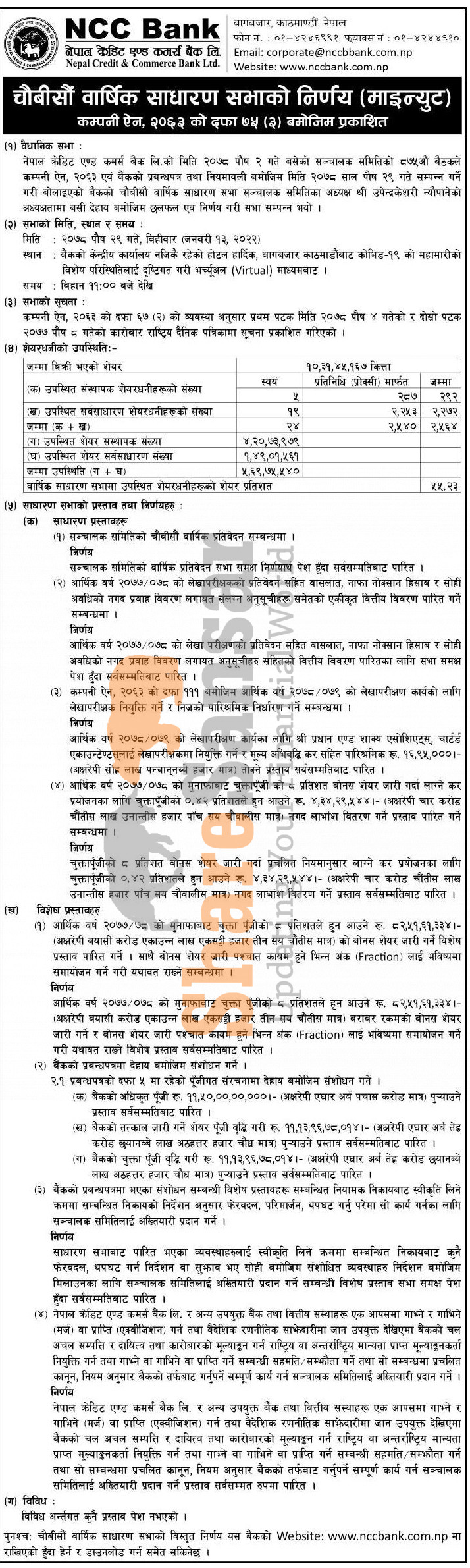 Nepal Credit and Commerce Bank Limited has published the minutes of its 24th AGM.