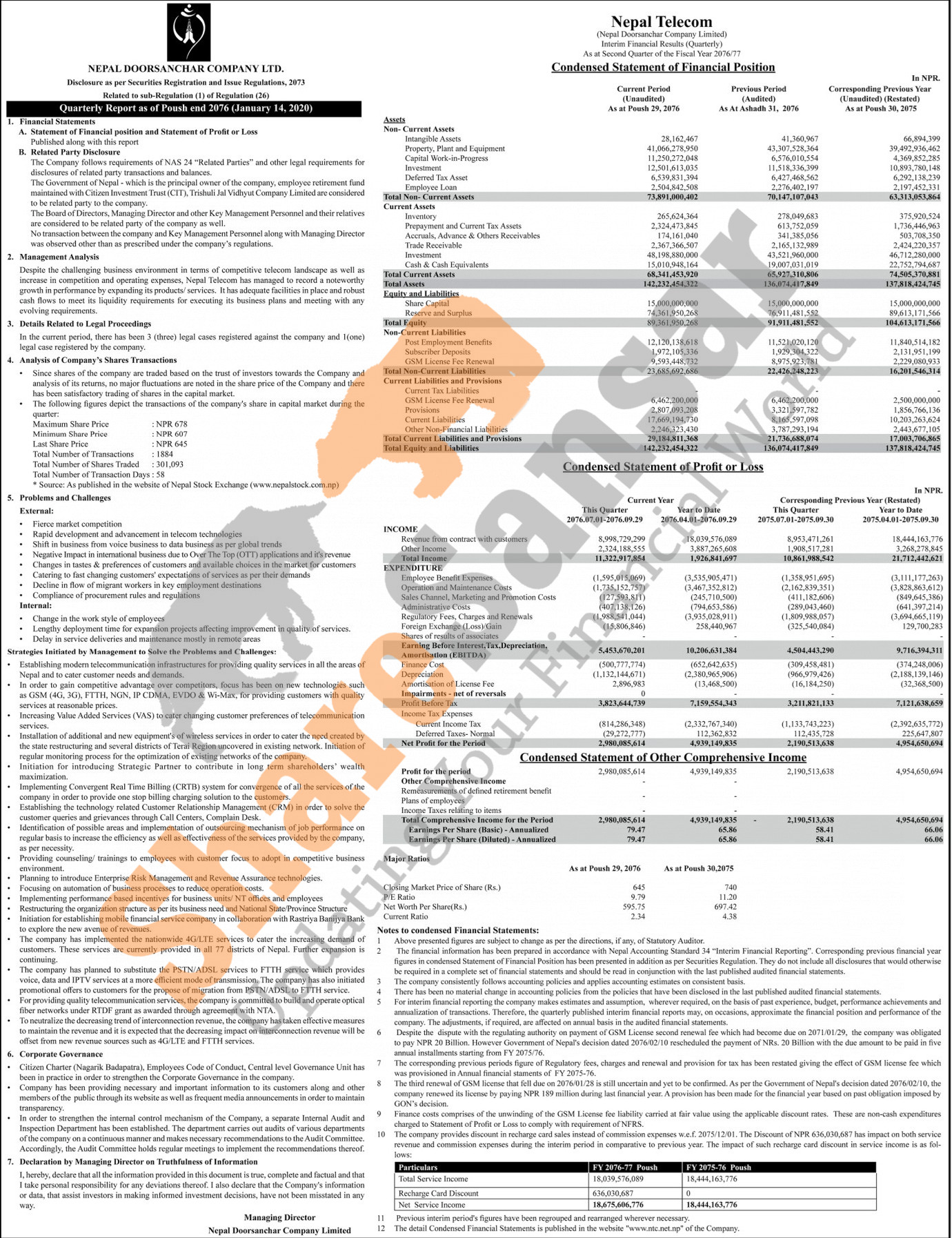 Nepal Doorsanchar Company Limited has posted a net profit of Rs 4.93 billion and published its 2nd quarter company analysis of the fiscal year 2076/77.