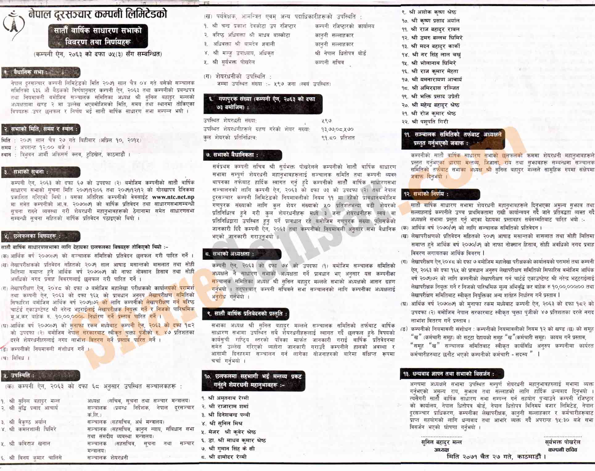 Nepal Doorsanchar Company Limited has published its 7th AGM minute.