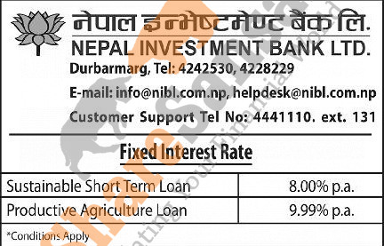 Nepal Investment Bank Limited has published a notice regarding the interest rate on the various deposit products and its effective from 7th Shrawan, 2077.