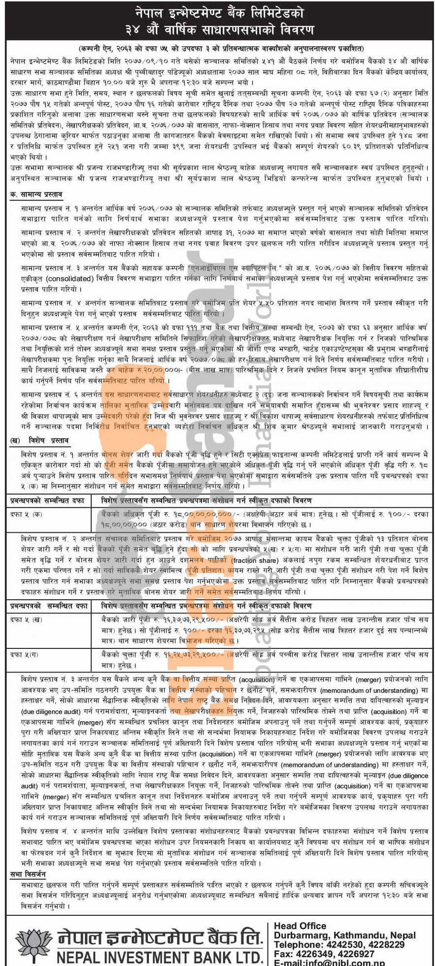 Nepal Investment Bank Limited has published the minutes of its 34th AGM.
