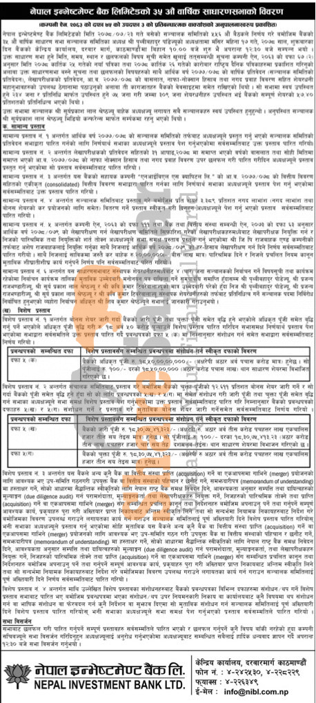Nepal Investment Bank Limited has published the minutes of its 35th Annual General Meeting (AGM).