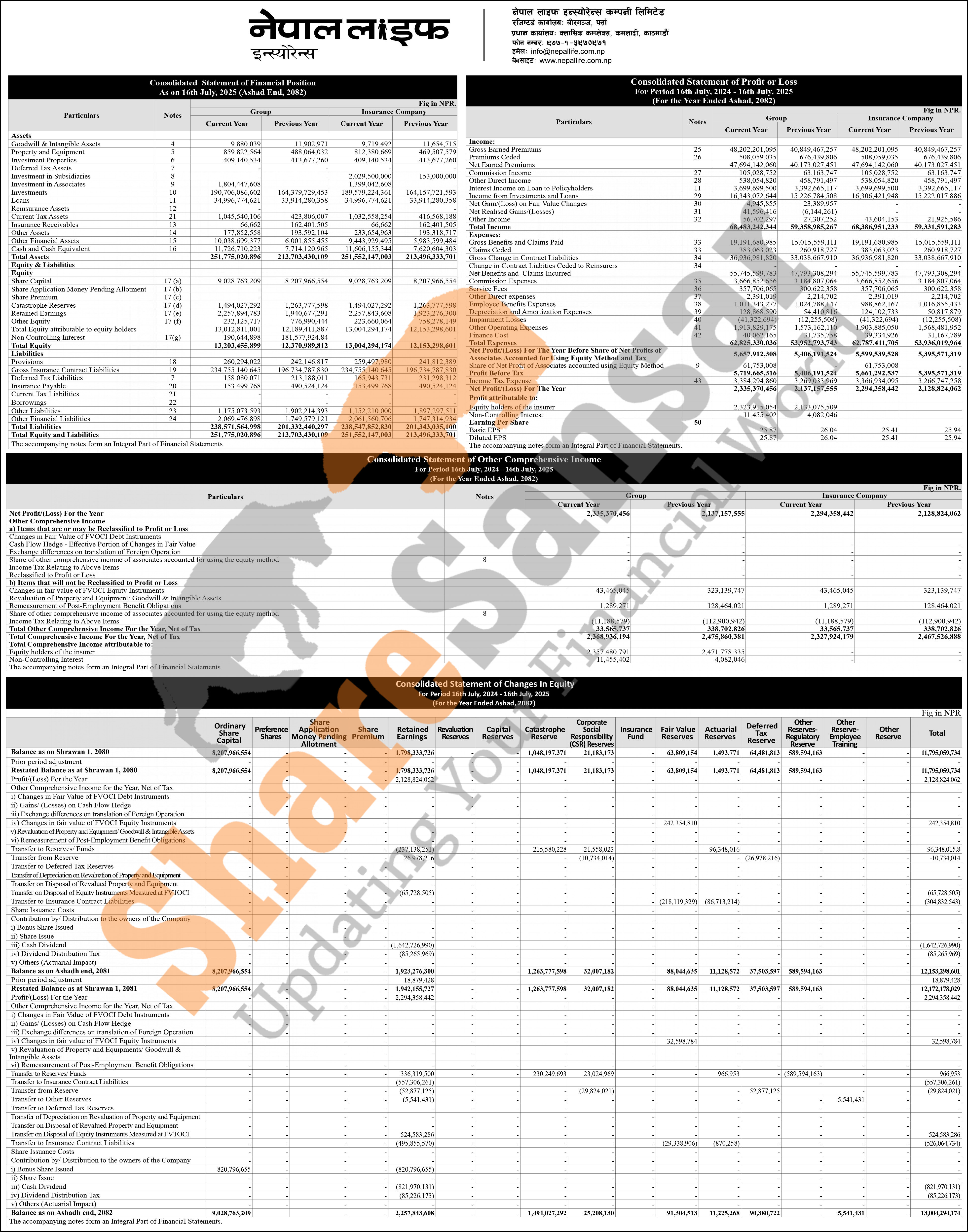 Nepal Life Insurance Company Limited has published its annual financial highlights of the fiscal year 2081/82.
