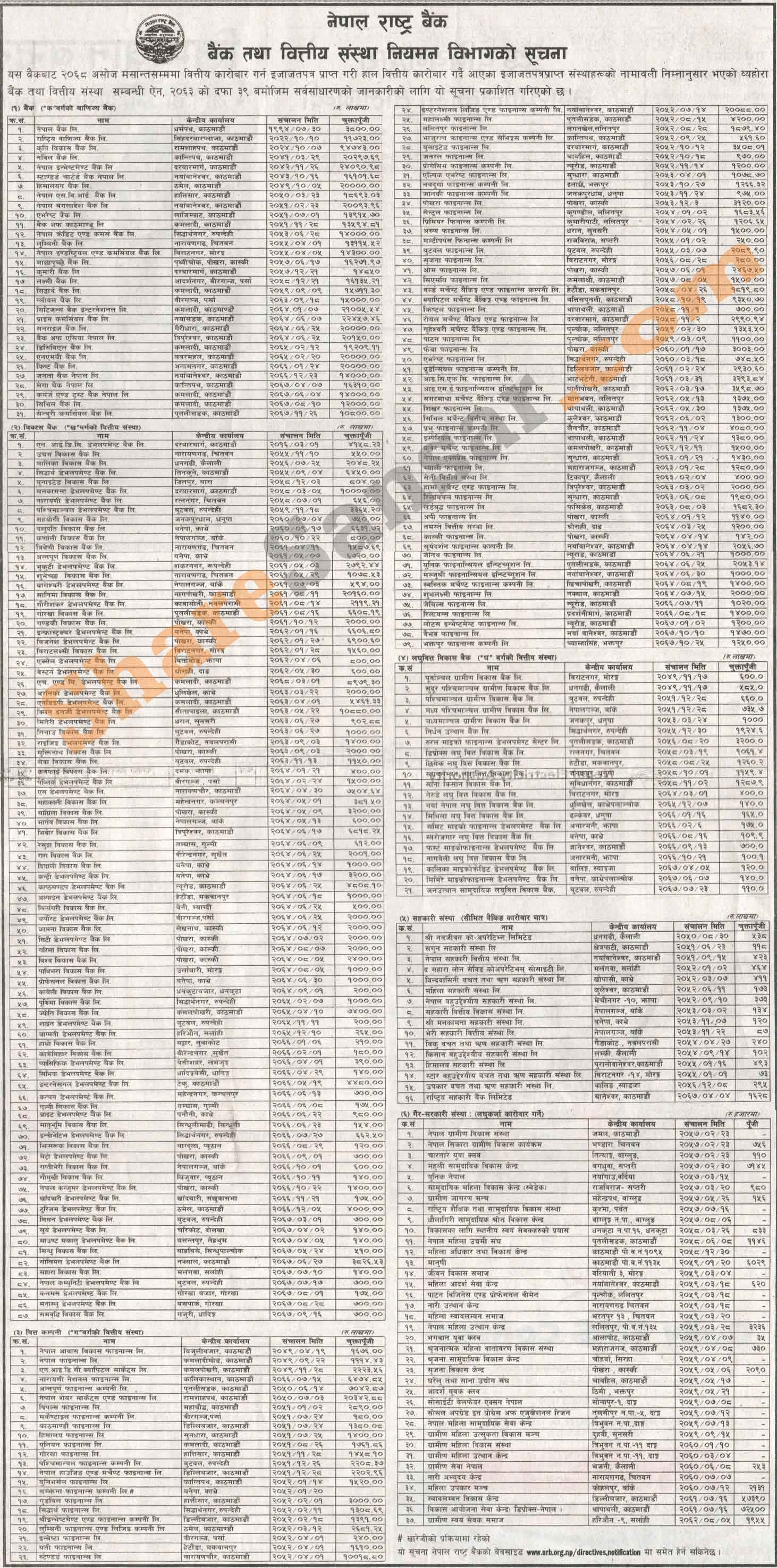 Nepal Rastra Bank has published the list of liscensed financial institutions up to Asoj 2068.