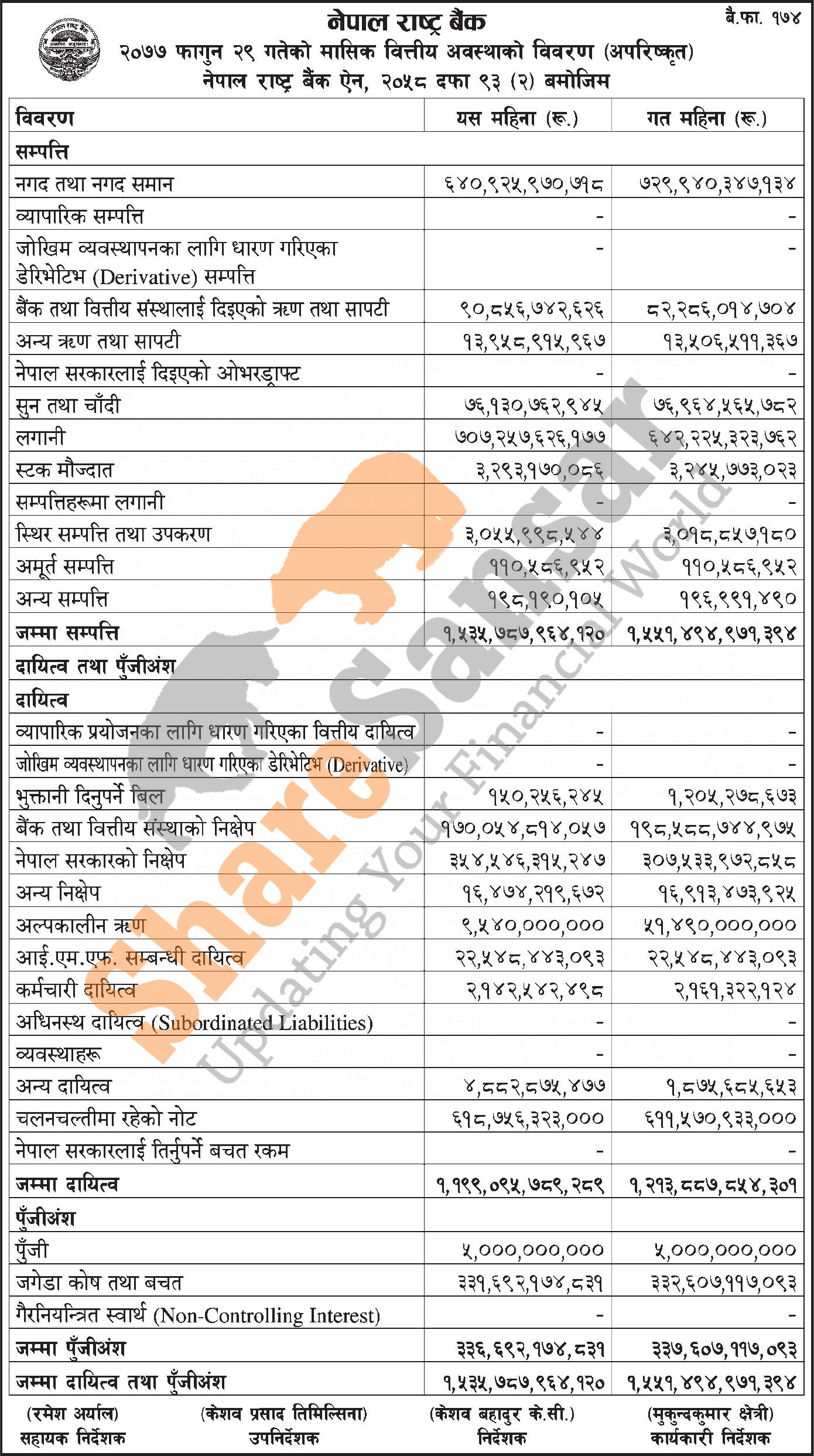 Nepal Rastra Bank has published the monthly balance sheet for the month of Falgun, 2077.