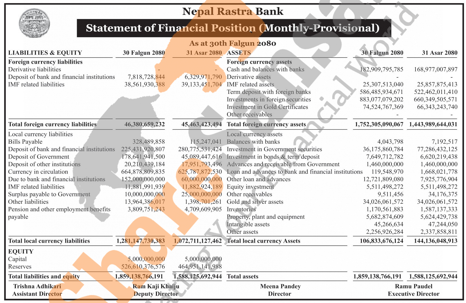 Nepal Rastra Bank has published the monthly balance sheet for the month of Falgun, 2080.
