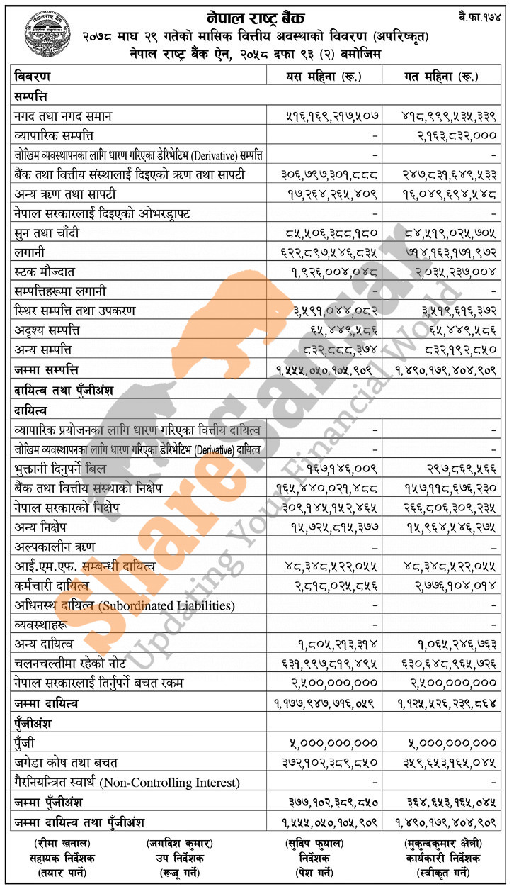 Nepal Rastra Bank has published the monthly balance sheet for the month of Magh, 2078.