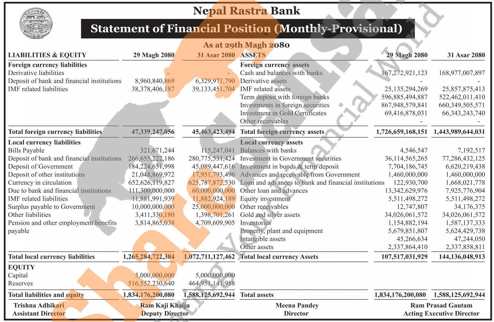 Nepal Rastra Bank has published the monthly balance sheet for the month of Magh, 2080.