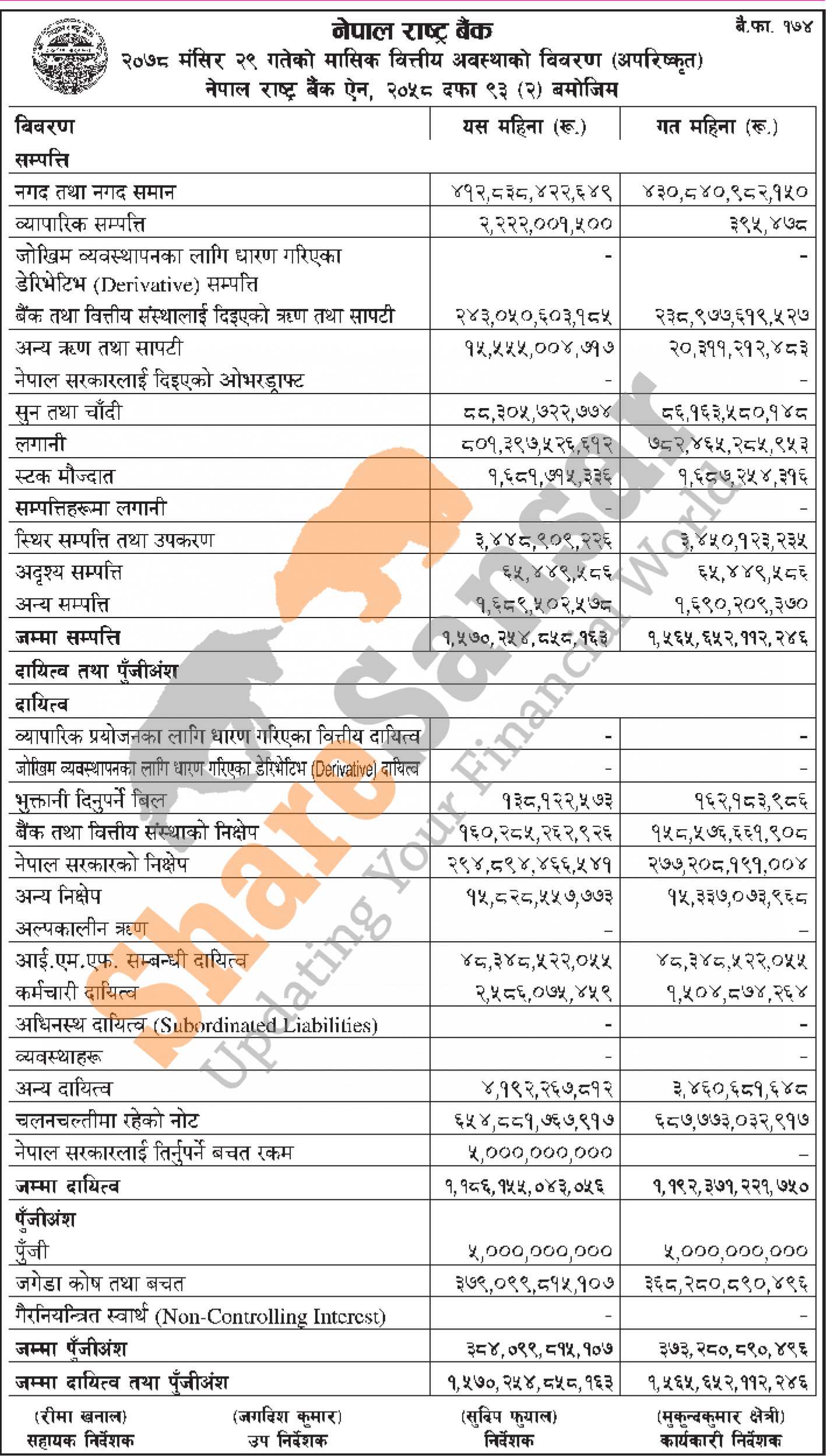 Nepal Rastra Bank has published the monthly balance sheet for the month of Mangsir, 2078.