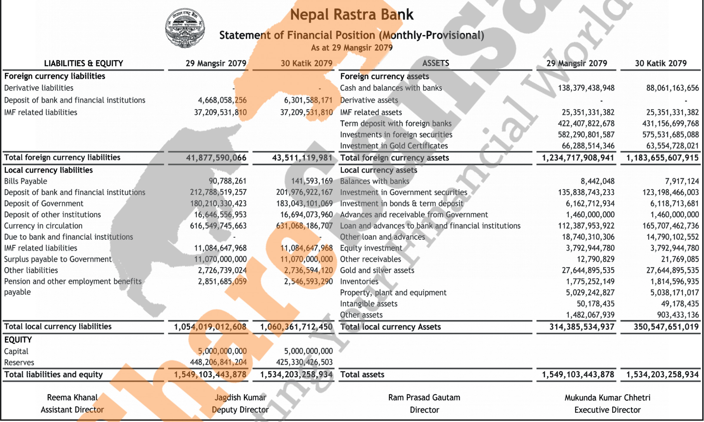 Nepal Rastra Bank has published the monthly balance sheet for the month of Mangsir, 2079.