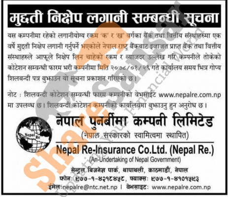 Nepal Reinsurance Company Limited has published a notice seeking quotation of fixed deposit interest.