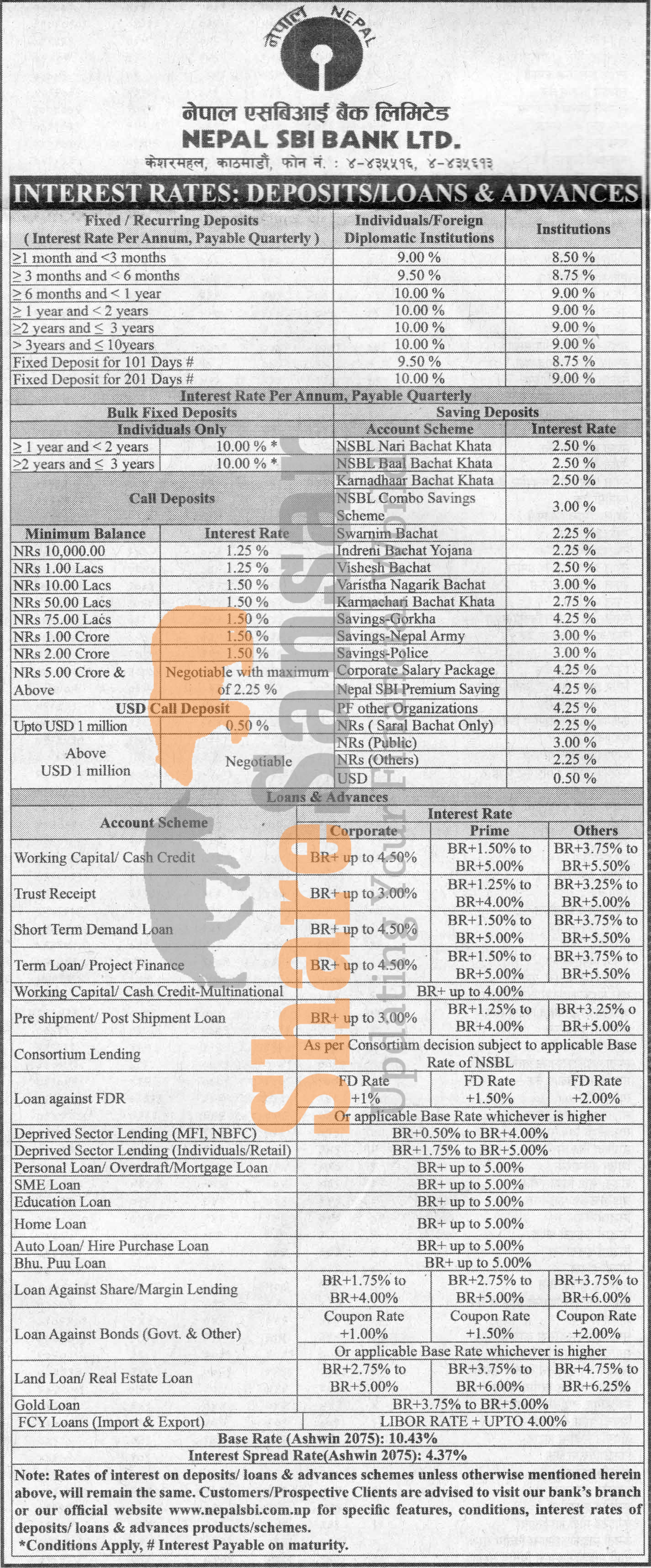Nepal SBI Bank Limited has published a notice regarding new interest rate.