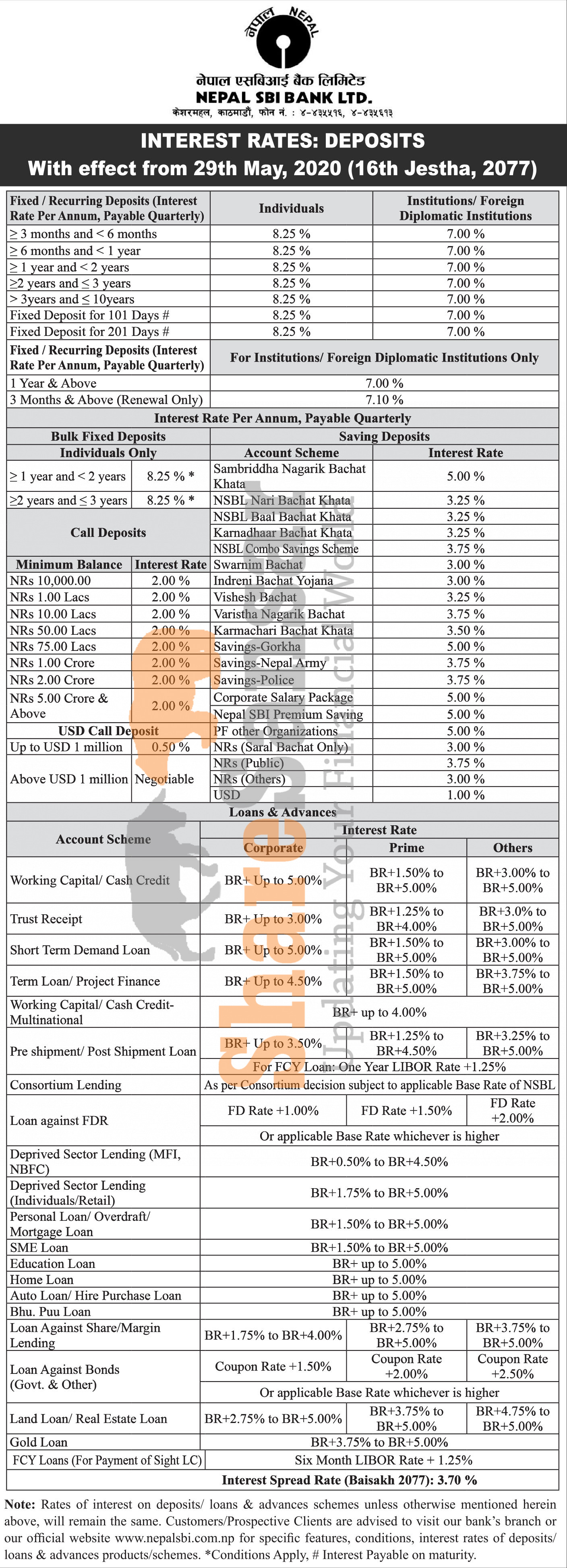 Nepal SBI Bank Limited has published a notice regarding new interest rate and its effective from 16th Jestha, 2077.