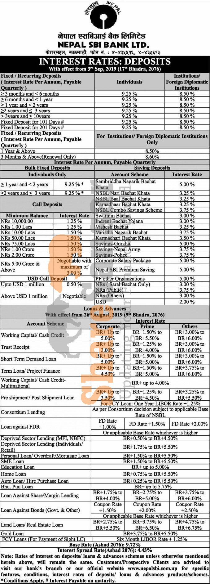 Nepal SBI Bank Limited has published a notice regarding new interest rate and its effective from 17th Bhadra, 2076.