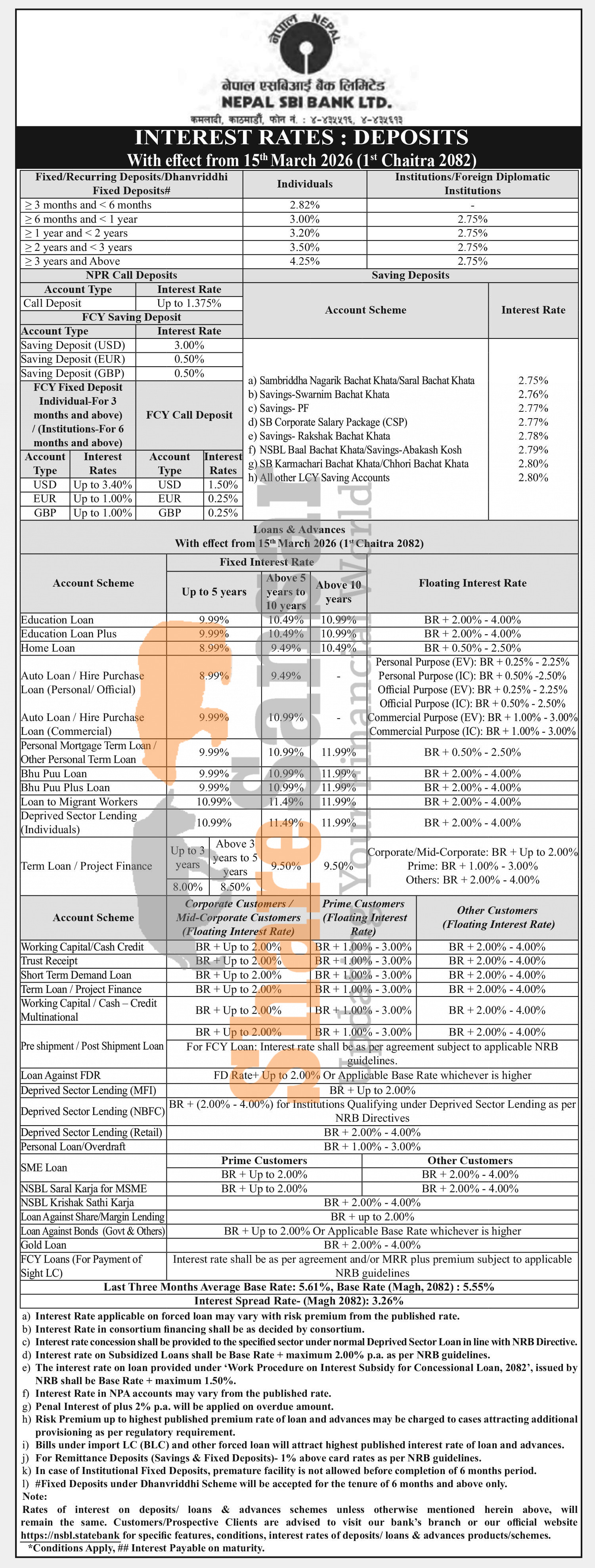Nepal SBI Bank Limited has published a notice regarding the new interest rate for deposit and loan products and it's effective from 1st Chaitra, 2082.