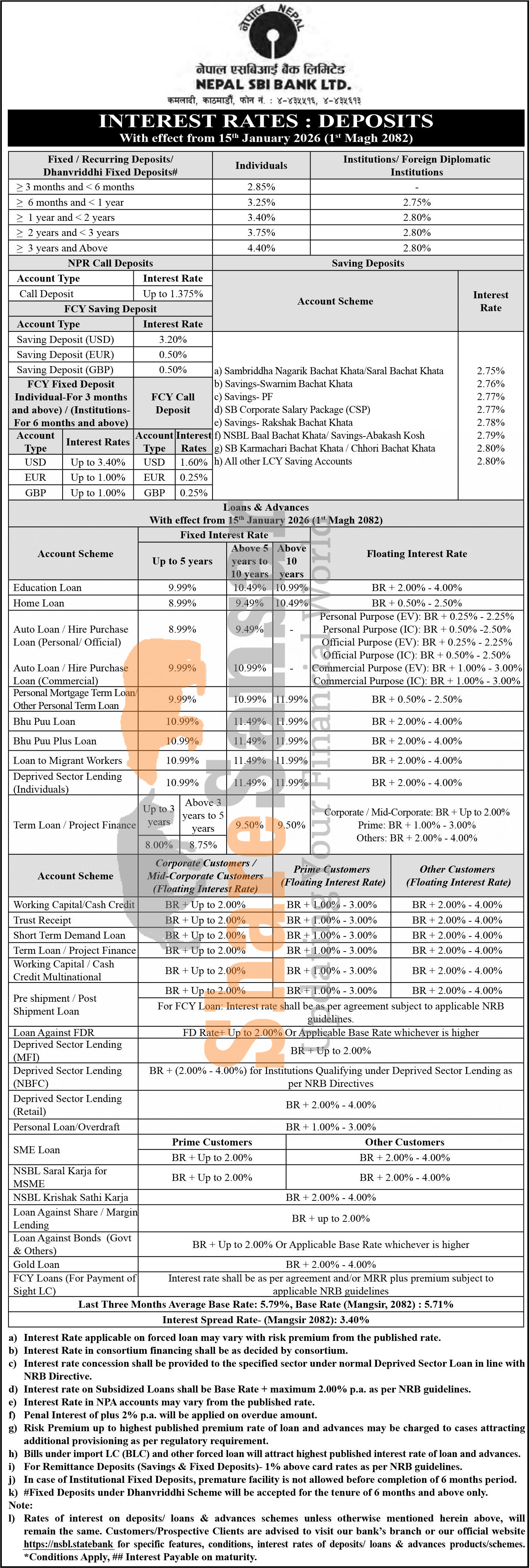 Nepal SBI Bank Limited has published a notice regarding the new interest rate for deposit and loan products and it's effective from 1st Magh, 2082.