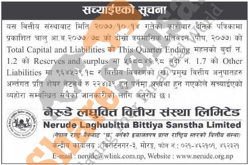 Nerude Laghubitta Bittiya Sanstha Limited has amended its published 2nd quarter report of FY 2077/78.